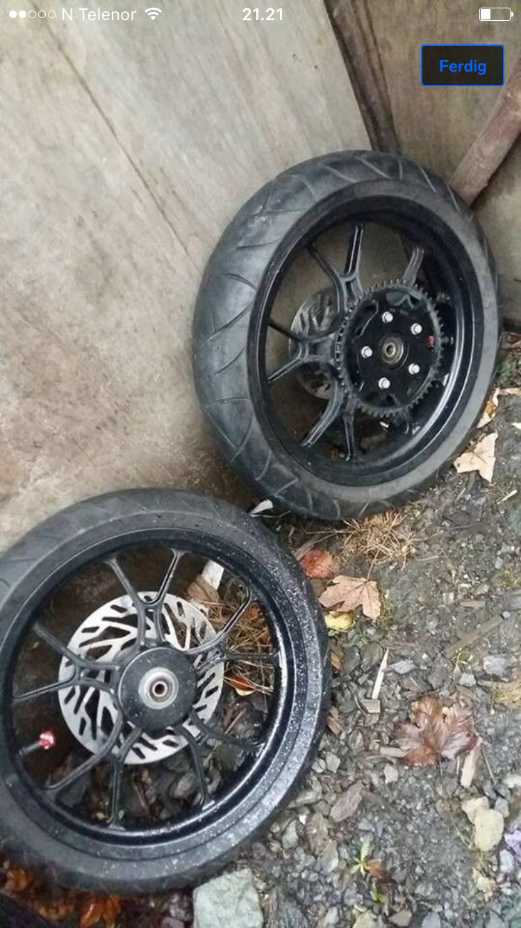 Olli001 Skrevet 22. februar 2017 Skrevet 22. februar 2017 (endret) Hei, vurderer å kjøpe et par med støpte felger til min derbi DRD pro 2012mod, er ikke sikker på hva felgene heter. Men lurte på om noen vet hva som er Max størelse for bakfelgen? Det er sånne som alle mopeder fra derbi, rieju osv bruker. bilde av de her. Endret 22. februar 2017 av Olli001