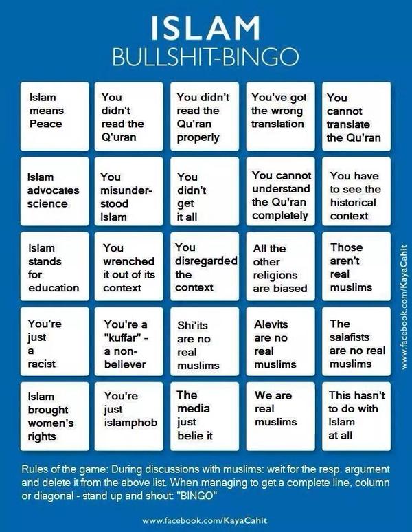 sicios Skrevet 22. april 2017 Skrevet 22. april 2017 Litt morsomt debattinnlegg i Dagbladet i dag: http://www.dagbladet.no/kultur/legitimerer-koranen-terrorisme/67489686 Her sies det at "islamofober" (altså noen med en diagnose og som fortjener å bli marginalisert) påstår at islam legitimerer (fremmer?) terrorisme. Dette er tull, blir det hevdet. Islam bare legitimerer "selvforsvar" når den blir angrepet eller truet. Men islam blir da truet. Selvfølgelig. Alle religioner eller tro på julenissen blir "truet" i et moderne rasjonelt samfunn. Troen på at man er på lag med overnaturlige vesener henger da ikke på greip. Når den norrøne religion i sin tid ble truet av kristendommen - så fremmet det vold. Vikingene var ikke bare ute etter gull i kirker og klostre. De oppførte seg også som "ekte terrorister". Tilsvarende kan andre religioner fremme vold når de går mot slutten. Tror nå jeg da. Quran 4:56 - Indeed, those who disbelieve in Our verses - We will drive them into a Fire. Every time their skins are roasted through We will replace them with other skins so they may taste the punishment. Indeed, Allah is ever Exalted in Might and Wise. Quran 2:23 - And if you are in doubt about what We have sent down upon Our Servant ?[Muhammad], then produce a surah (silk fabric, book) the like thereof and call upon your?witnesses other than Allah , if you should be truthful. But if you do not - and you will never be able to - then fear the Fire, whose fuel is men and stones, prepared for the disbelievers. Quran 2:18 - Deaf, dumb and blind - so they will not return [to the right path]. Or [it is] like a rainstorm from the sky within which is darkness, thunder and lightning. They put their fingers in their ears against the thunderclaps in dread of death. But Allah is encompassing of the disbelievers. Quran 2:30 - And [mention, O Muhammad], when your Lord said to the angels, "Indeed, I will make upon the earth a successive authority." They said, "Will You place upon it one who causes corruption therein and sheds blood, while we declare Your praise and sanctify You?" Allah said, "Indeed, I know that which you do not know."