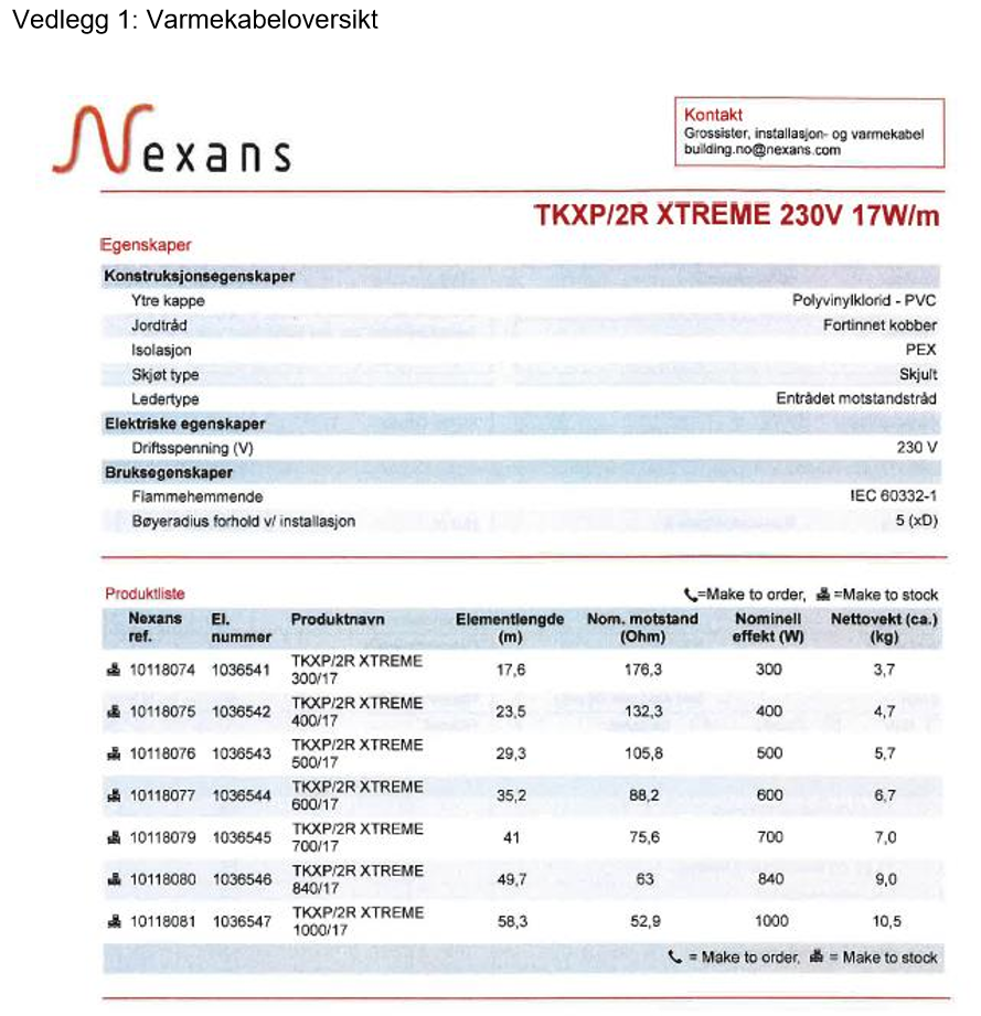 orp Skrevet 23. april 2017 Forfatter Skrevet 23. april 2017 Her er noen tips: Mål på rommet (kvm) x ønsket effekt per kvadratmeter = effekt som må installerers. Regn ut CC ut i fra kabel som treffer ønsket W best. Termostat eller effektregulator. Regn sammen det du vet av last og legg på for eksempel en hårføner el. Dimensjoner ut i fra dette. Hva kan være galt? Jordfeil eller overlast? Tusen takk for tipset. Er det riktig at jeg har funnet varmekabel lengden i vedlegg 1 eller må jeg regne meg fram for å finne lengden?