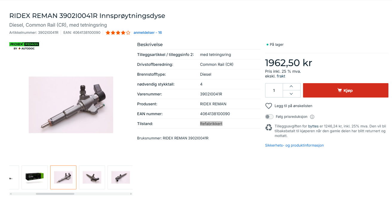 wampster Skrevet 19. oktober Skrevet 19. oktober Er det noen som har erfaring med "tilleggsavgiften" Autodoc tar og om man faktisk får det tilbakebetalt? Evt hva det koster å sende i retur, eller kommer det med ferdig betalt returlapp? Alle andre sider (bildeler/skruvat/eurodel/etc har omtrent dobbel pris+ på denne delen i forhold til autodoc.