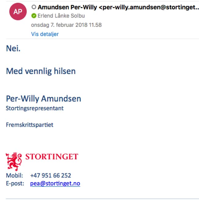 Amundsen (FrP) sa nei til å bli intervjuet om klima