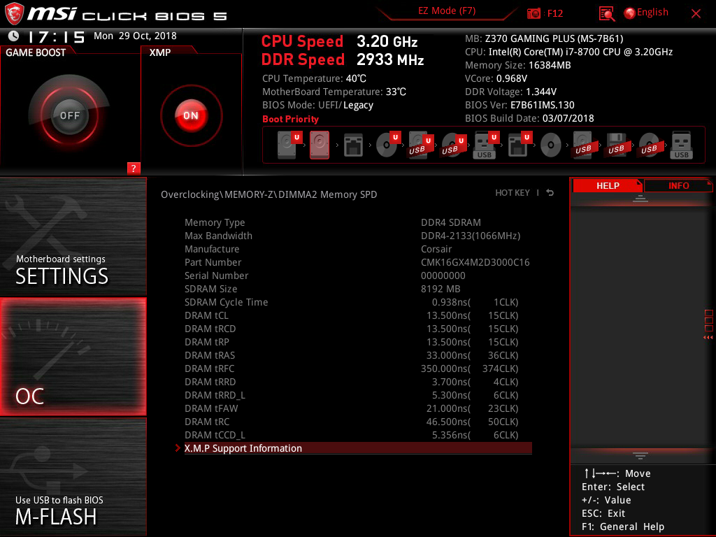 Syar-2003 Skrevet 28. oktober 2018 Skrevet 28. oktober 2018 (endret) Gå inn i biosen til hovedkortet og enable xmp profil på minnet. Og ikke kjør med aggressive performance instillinger til å begynne med. Men sett perfomance profile til safe eller normal eller hva MSI kaller det. Er minnebrikkene på QVL liste burde det jo funke greit out of the box men man må sette på xmp selv i fleste tilfeller. Det er alltid lurt å leve releasenotes på bios oppdateringene først (se etter memory compability), er ikke alltid man behøver å legge inn siste versjon .Men det skader jo ikke. Endret 28. oktober 2018 av syar2003