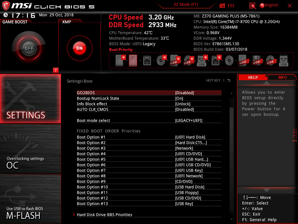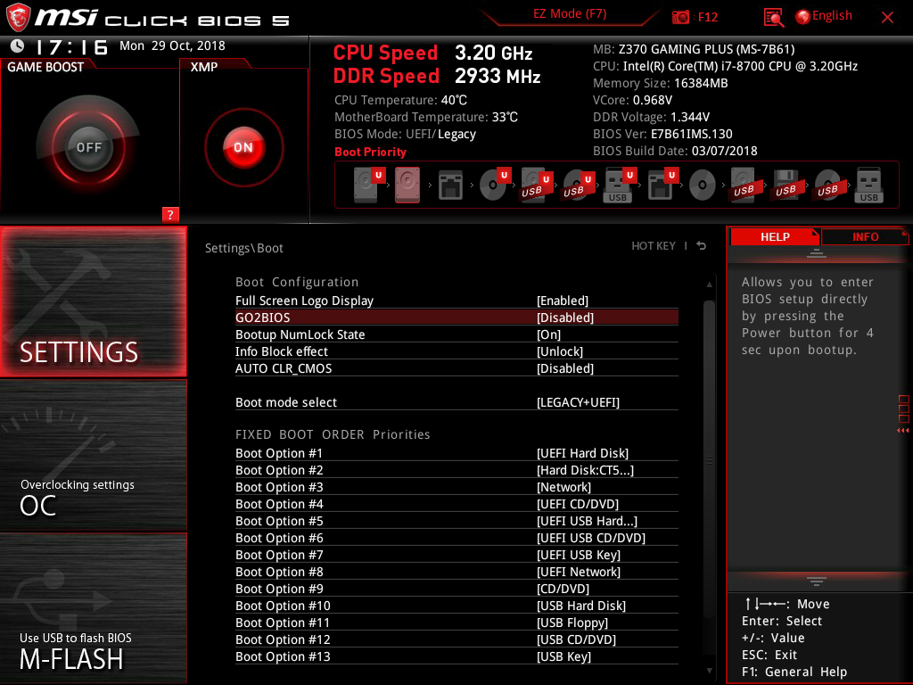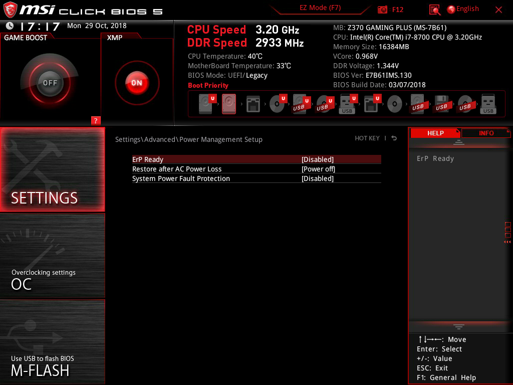 Syar-2003 Skrevet 29. oktober 2018 Skrevet 29. oktober 2018 1/Do a clear CMOS: - Power off PSU, unplug the power cord and wait that all mobo's leds light off. - Either . short JBAT1 during at least 20s (if you have not a jumper cap, use something like a screwdriver but be cautious to touch only the 2 pins of JBAT1) or . remove the battery cell during 30mn. - Plug the power cord then power on. - You would see a question asking to enter in bios setup or load bios default values . if you have, enter in bios setup, press <F6>, confirm, set "SETTINGS \ Advanced \ Windows OS Configuration \ Windows 10 WHQL Support" = "Enabled", set ""SETTINGS \ Advanced \ Wake Up Event Setup \ Resume by USB Device" = "Enabled", change nothing else in bios (for test purpose), press >F10> and confirm (PC should reboot). . if not, retry one time from the beginning waiting longer. Result? 2/ If problem remains, disable Windows Fast Startup: - Enter in "Control Panel \ Power Options" - Click "Choose what the power buttons do", then "Change settings that are currently unavailables" - Uncheck "Turn on fast startup (recommended)" Shutdown then retry. Result? https://forum-en.msi.com/index.php?topic=310109.0