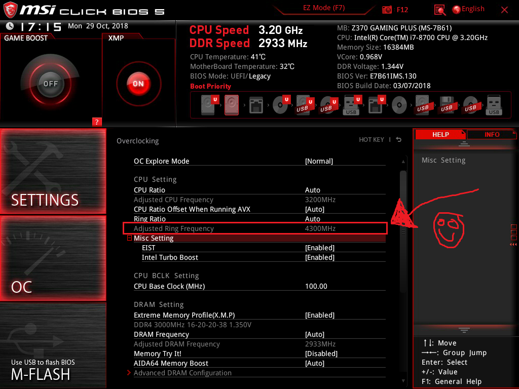 kla3torsk1 Skrevet 29. oktober 2018 Skrevet 29. oktober 2018 er ikke adjusted ring frequency litt høy til å kjøre en 8700"non k" ? prøv å resett bios, hvis dette ikke funker, så prøve å skru ned adjusted ring ratio frequency til samme som CPU clock(dog hvis dette lar seg gjøre med Non K CPU) Legger ved bilde av den aktuelle innstillinga MSI_SnapShot_03.bmp