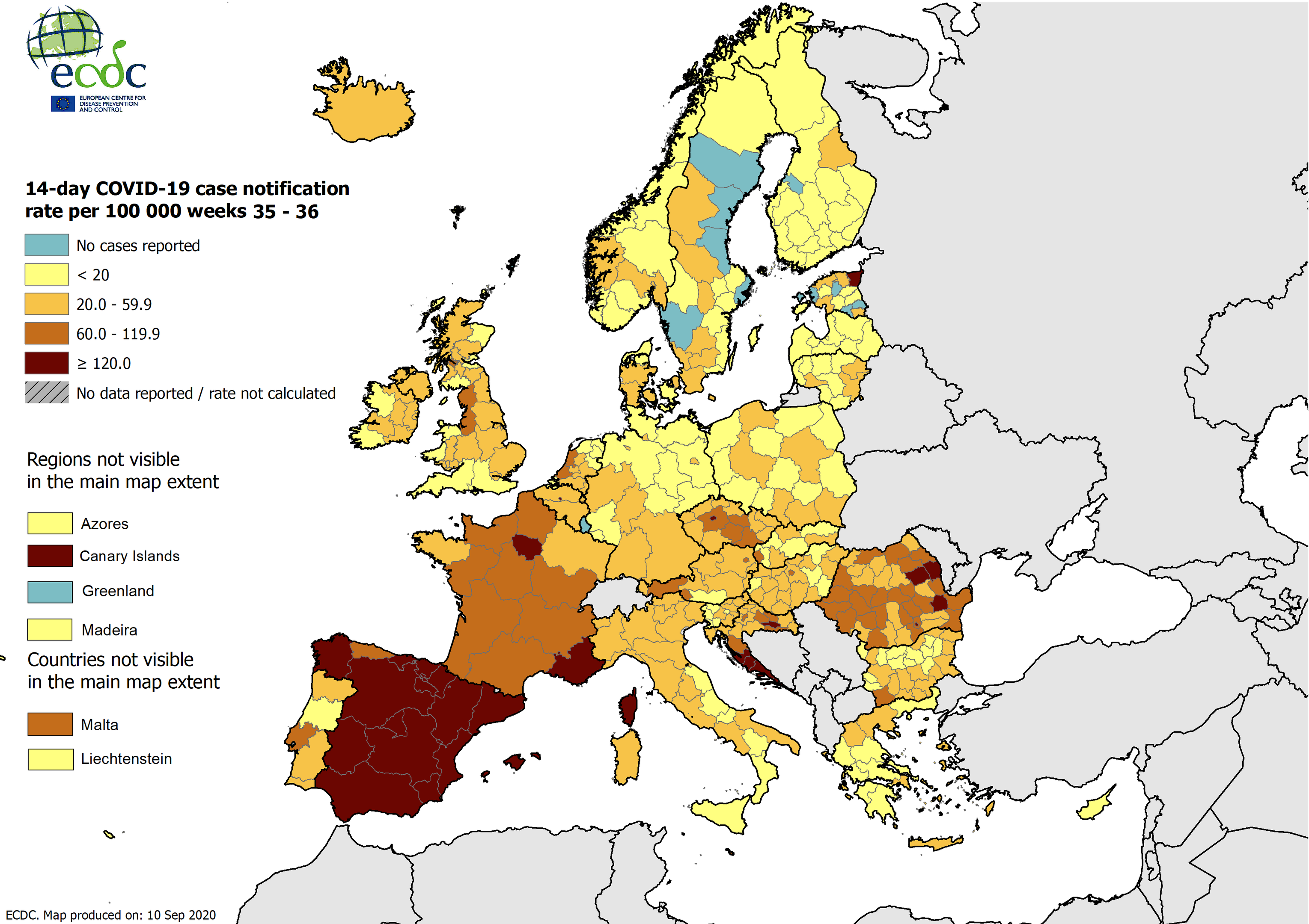 Nivået har ligget ganske jevnt i området 30-70 de siste dagene, så 239 virker som et klart avvik. Klikker du inn på Spania-linken så er det en liste over oppdateringer lengre nede på siden og der står det: