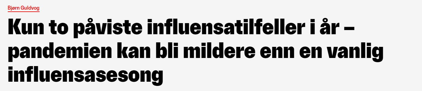 Ganske interessant at verdens superdødeligste livsfarligste pandemi i verdenshistorien sannsynligvis blir mildere enn en helt vanlig influensa 🙄