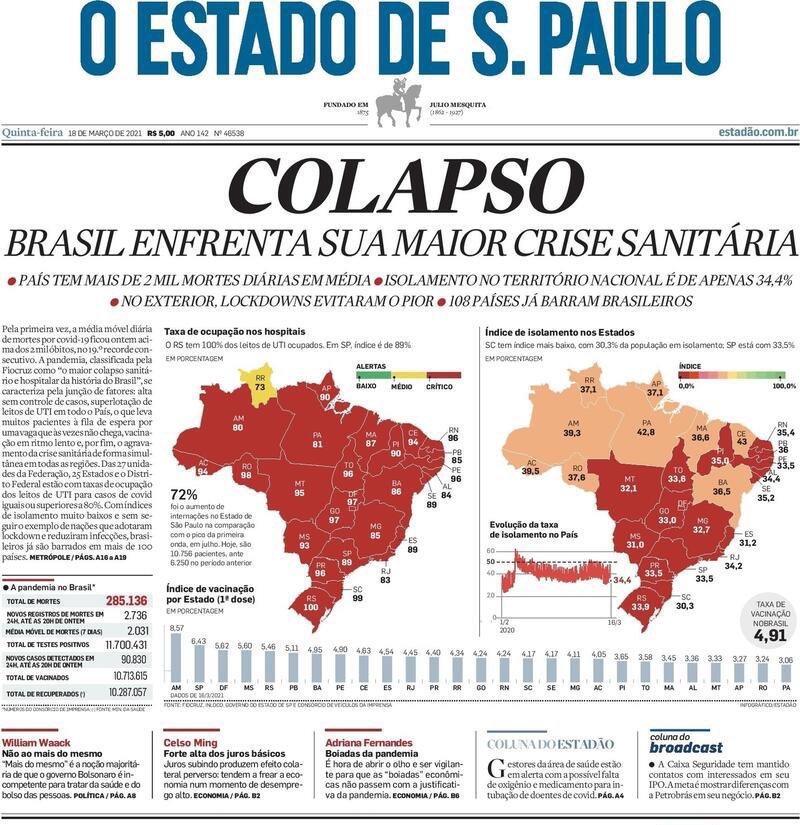 At en avis har krigsoverskrift "kollaps" (regner med at det er korrekt oversettelse fra portugisisk), betyr ikke at det ER kollaps.