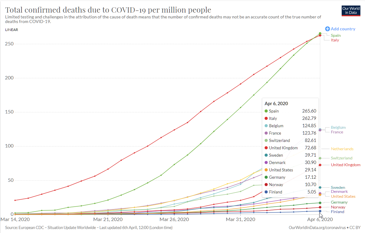 Påstanden ("Hvis det går til helvete i Sverige, så betyr vel det også at det går til helvete i de fleste europeiske land, ref. antall døde per million innbyggere:") stemmer vel fremdeles, eller?
