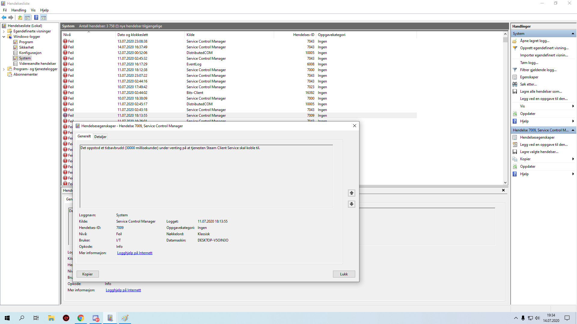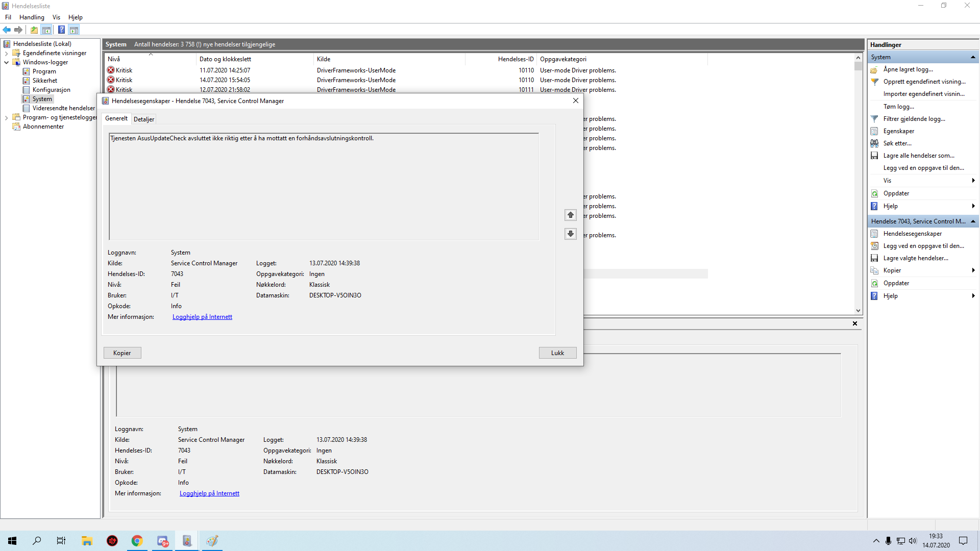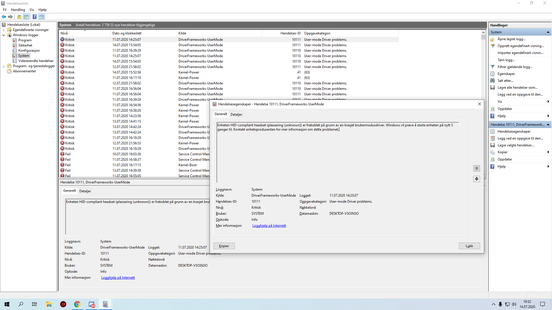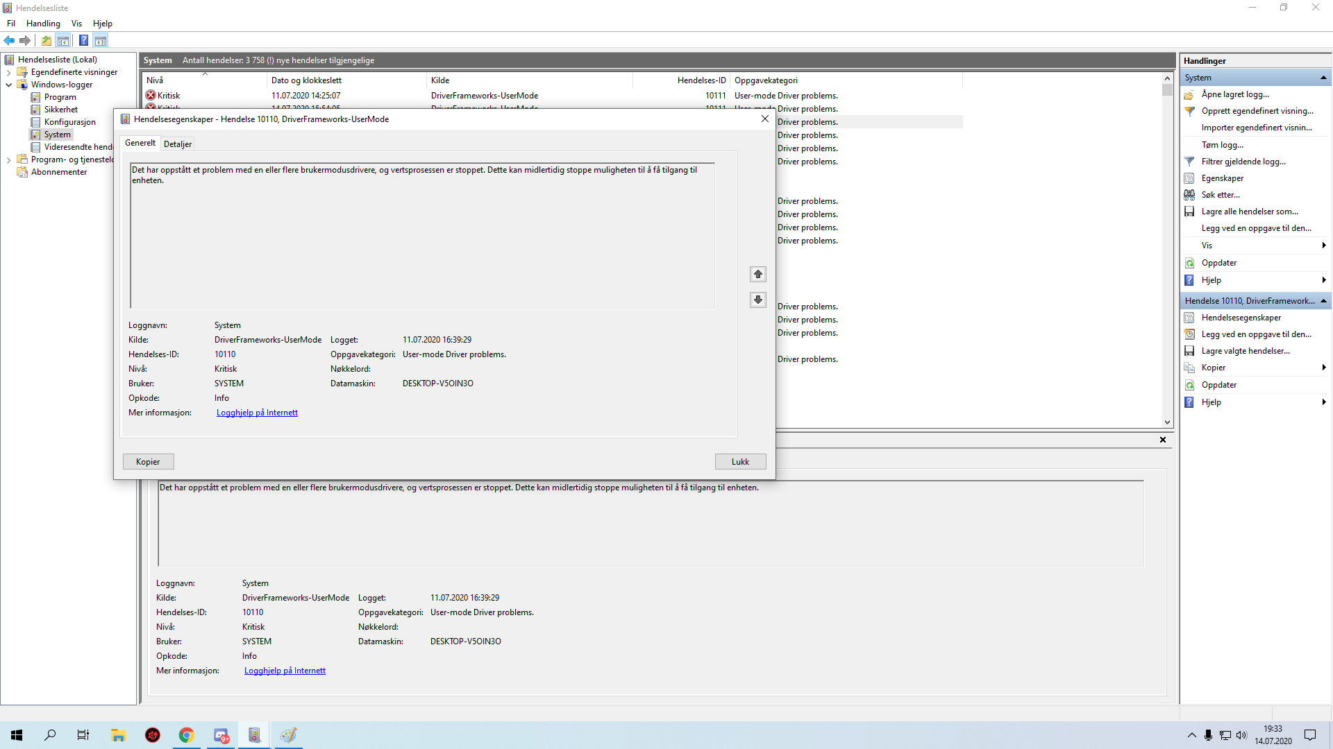 Cipher Panda Skrevet 14. juli 2020 Skrevet 14. juli 2020 ?Hva sier Hendelsesliste under Windows & System under Windows-logger? Advarsler og feil er relevante.