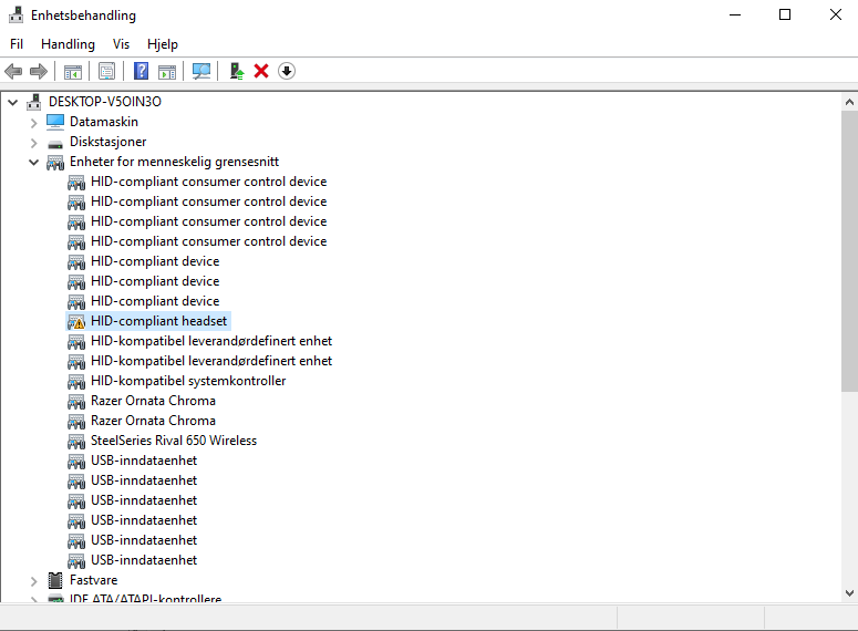 Cipher Panda Skrevet 14. juli 2020 Skrevet 14. juli 2020 sujee skrev (29 minutter siden): det er en Hyper X Cloud 2 headset som har usb port Her er problemet ditt, fjern USB dongle og bruk 3.5mm jack istedet. Du må likevel inn i Enhetsbehandling og avinstallere problemdriveren (du må kanskje gjøre det via Vis > Vis skjulte enheter).