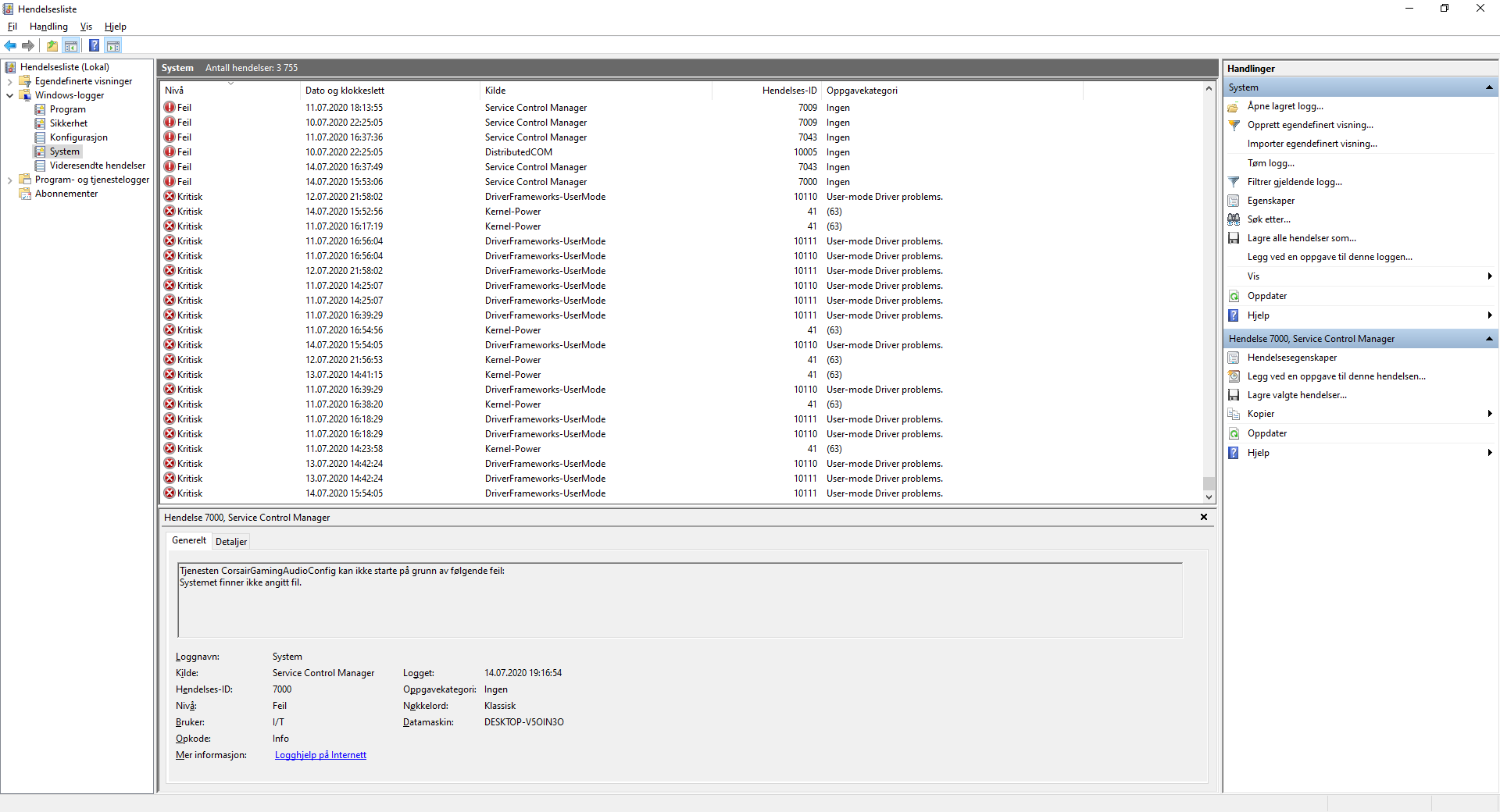 Cipher Panda Skrevet 14. juli 2020 Skrevet 14. juli 2020 Takk. Det ser ut som en USB-enhet (Corsair Adapter / USB dongle?) er problemet blant annet. Reinstaller chipset, gpu(DDU først), lan, lyd, etc.