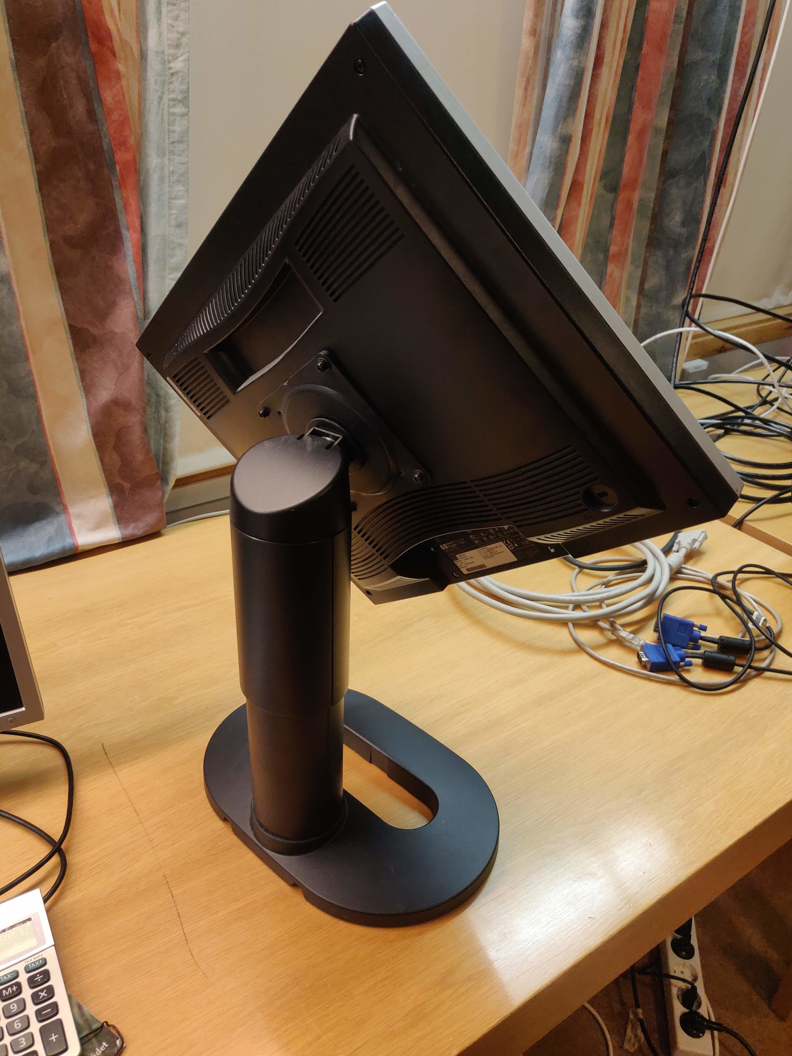 Complexity Skrevet 24. august 2020 Skrevet 24. august 2020 59 minutes ago, vidor said: Ikke sikker på når dette var men skjermene virka ganske høye. Har en Asus 16:9 skjerm på roterbar fot og den blir veldig høy i forhold til avisskjermen, så det var kanskje noe mellomting designet for tabloider. Det var ikke vanlig med roterbare skjermer på den tiden. Tok å leita litt mens jeg alikevell var på jobb, og fant faktisk en til slik skjerm! Må passe på å ta var på foten før den kastes. Skjermen er iallefall en HP P9626, og kan justeres i alle mulige vinkler, og høyt nok til at en 24" widescreen skjerm kan brukes i høyden.