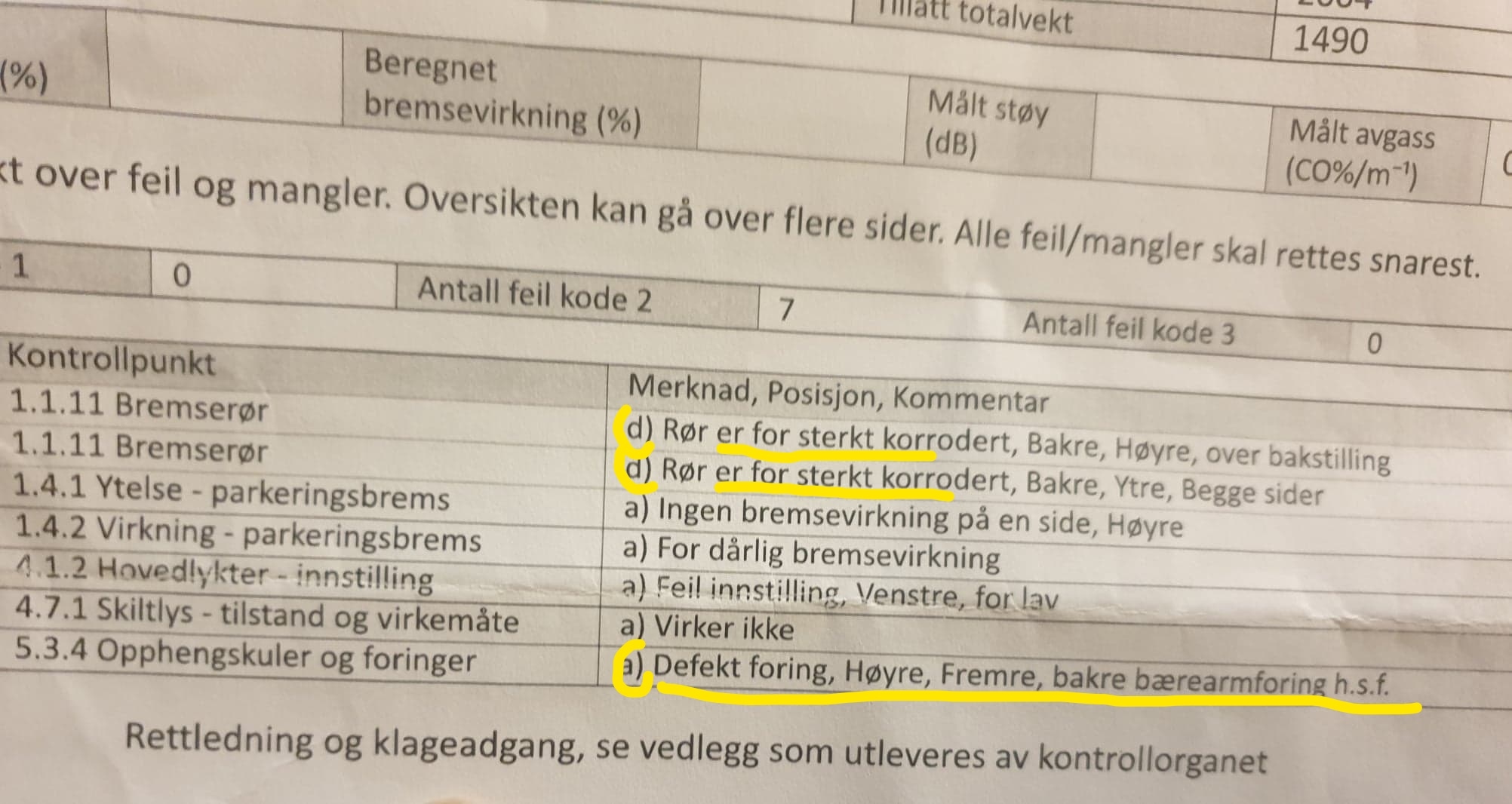 Adam87 Skrevet 21. september 2020 Skrevet 21. september 2020 Hei, Trenger litt hjelp med Eu godkjenning av bil og litt veiledning. Har nå fått 7 anmerkninger og fikset 4 av dem selv, og resterende trengs det litt mer avansert utstyr for, som ikke jeg har for å få den gjennom Eu godkjenningen. Har nå fått snakket med et verksted i Sverige som gjør den jobben til en veldig rimelig pris og tenker å dra til grensa og ordne det, og så da spare noe knoner på det. Fleste Verksteder i Oslo er bare en rip-off! er så ulike priser over alt og overpriset itillegg. Det jeg har igjen på lista er Bremserør og bærearmforing. Noen som har litt peil i det feltet her og kunne hjelpe meg med hva slags deler jeg trenger her? Gjelder en Honda Jazz Med Regnr: CF 29659 Legger til vedlegg her av Kontrollseddel. Setter veldig pris på all den hjelpen som tilbys... Mvh Adam