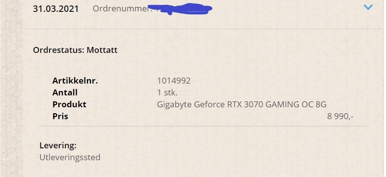 lucky666 Skrevet 31. mars 2021 Skrevet 31. mars 2021 Dragonlove skrev (1 minutt siden): Fikk nå ett litt billigere kort i dag. Proshop? Var litt treg på labben med betalinga på det kortet, men ordren får ihvertfall lov til å ligge der