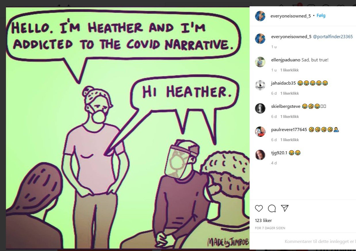 Det innebærer også at motstand mot smittevernstiltakene ikke nødvendigvis tilsier at folk har begynt å tro på "alternativt narrativ X". Det er faktisk mulig å mene at politiske avgjørelser er feil, uten samtidig å da måtte tilkjenne seg en tro på at et narrativ fra en konspirasjonsteori er det rette. Dette kan både være knyttet til avgjørelser tatt i affekt, og det kan være kritikk basert på omfattende kunnskap. Sistnevnte finner du flere av også her hjemme, senest i den pågående debatten som pågår i Aftenposten: https://www.aftenposten.no/meninger/kronikk/i/PoE9b0/pandemiboelgen-og-det-slitne-sykehuset