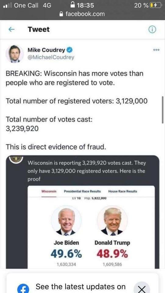Pallehysa Skrevet 6. november 2020 Skrevet 6. november 2020 Alexander4840 skrev (1 time siden): Er vel en ugle eller 2 som lusker i mosen, har det vært noen flere slike hopp for Trump, eller i det hele tatt? Du blir ikkje lei av å hoppe på desinformasjon? The State of Wisconsin had 3,684,726 active registered voters on November 1, 2020. Kilde? https://elections.wi.gov/node/7220 4 1