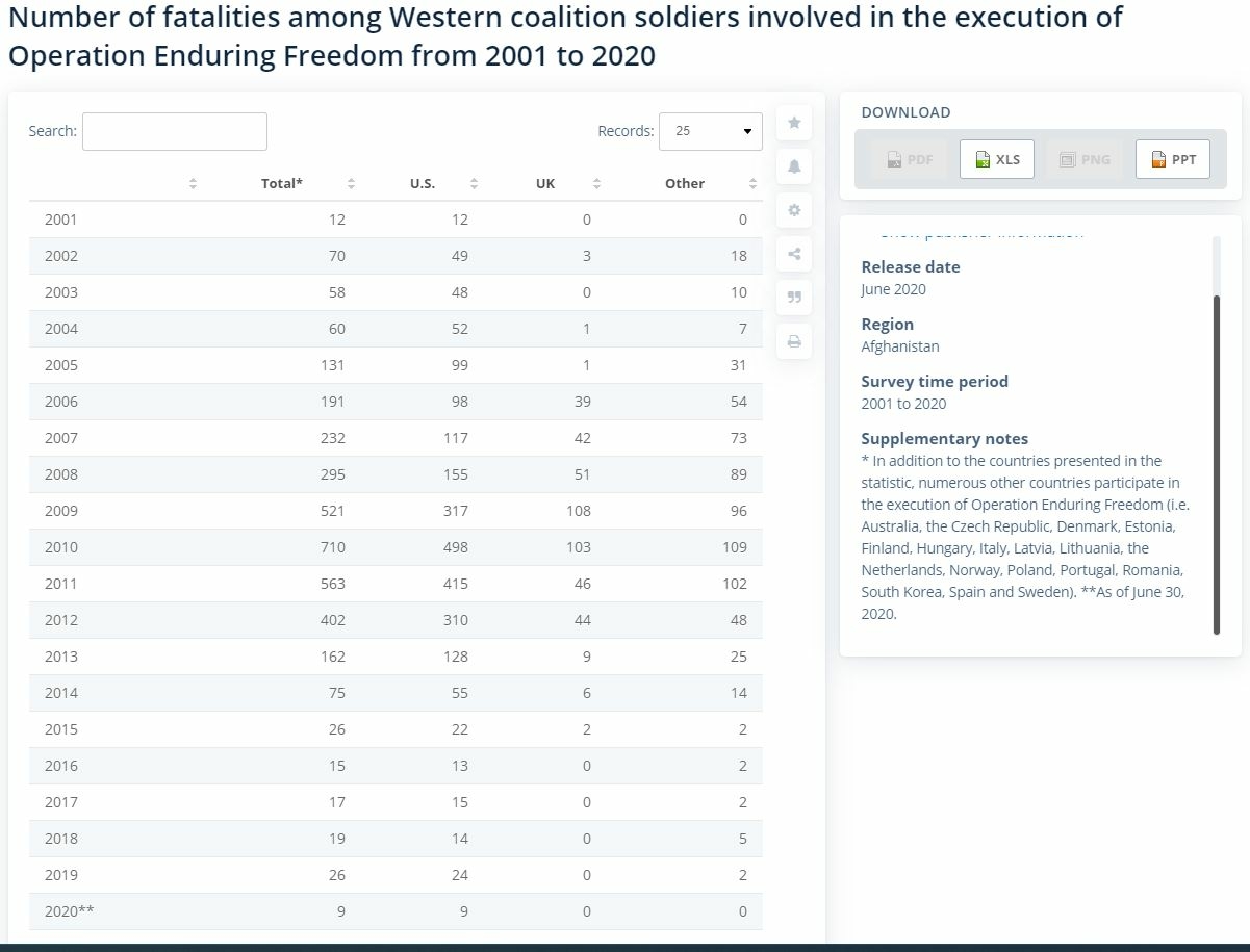 Espen Hugaas Andersen Skrevet 6. november 2020 Skrevet 6. november 2020 3 minutes ago, TMfrantic said: Forresten har du sett på statistikken over drepte soldater i Afghanistan pr år? Her tok jeg et utklipp. Som sagt, soldatene har all grunn til å stemme på Trump. Hvorfor skal tre år med stigning i antall dødsfall være en god ting? (Tall for 2020 er bare for 6 måneder, så man får se om det blir fire år med stigning.) 2
