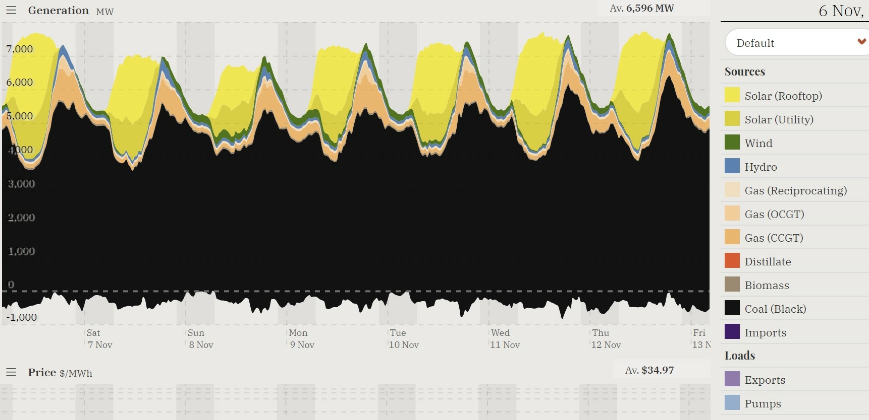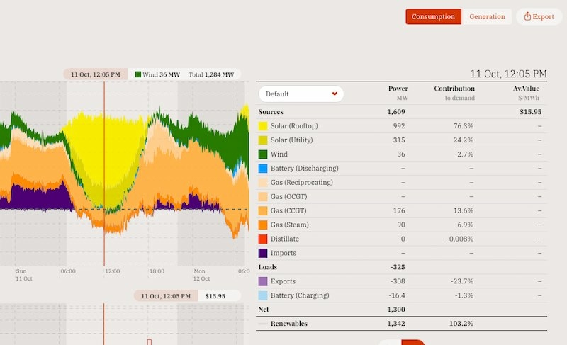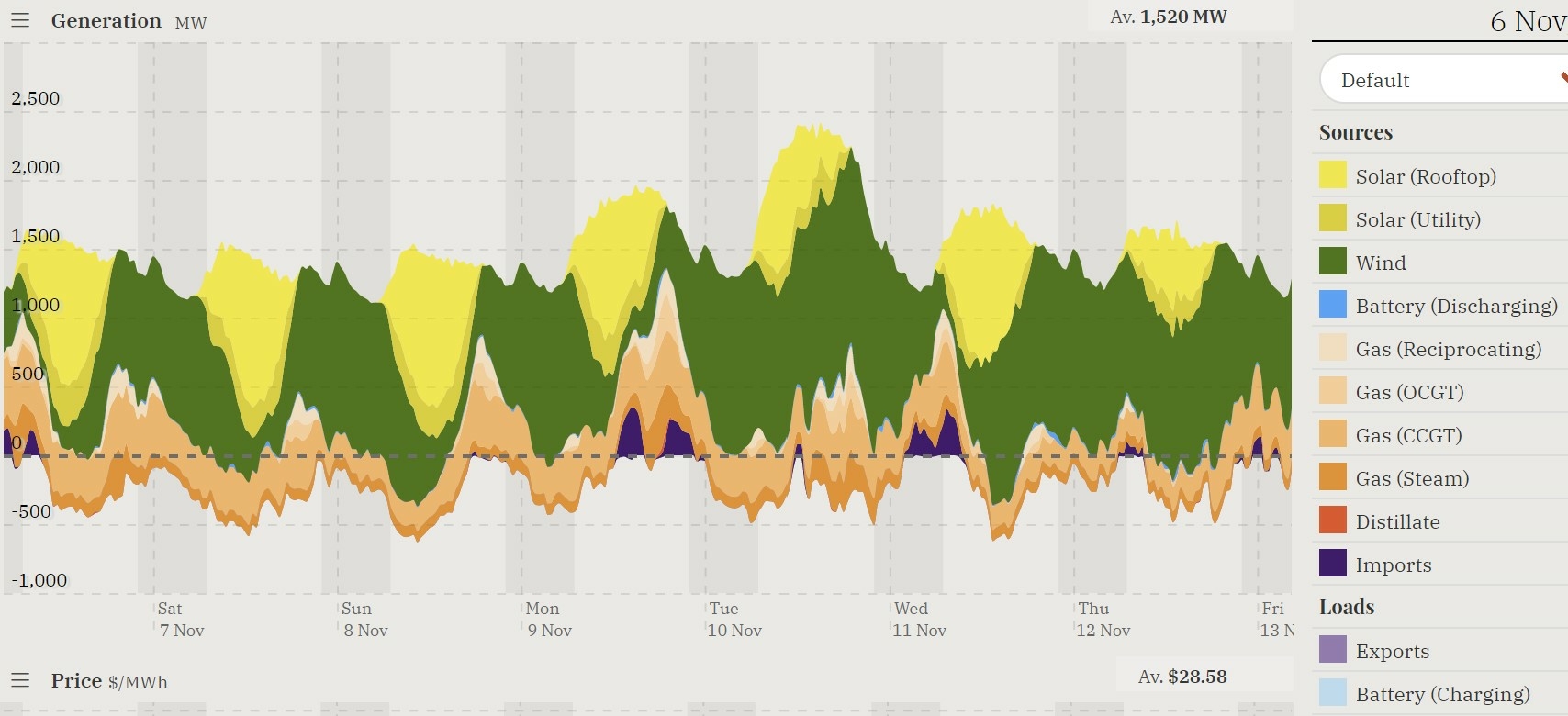 RJohannesen Skrevet 12. november 2020 Skrevet 12. november 2020 Pirkko Rygh skrev (1 time siden): Gjelder dette hele året, solen skinner jo ikke hele tiden, du bruker gass da? Har du noe slags batterier? Klima, sommer hele året? Australia har mye sol nesten hele året ettersom jeg forstår, og mye problemer med tørke... Men som du ser har de i Sør Australia en god del gasskraft fra før av som justeres opp og ned, samt at de utveksler med nabostater. De har også en god del vindkraft (grønn). Det er også her Tesla har installert det som da var verdens største grid-batteri. Det er markert i blått. Har lagt ved et bilde fra siste uka. Og en fra Queensland som vel er kjent som en kullstat der, men også der begynner solceller å ta en god jafs av strømproduksjonen, spesielt i toppforbruksperioden av døgnet. 1 3