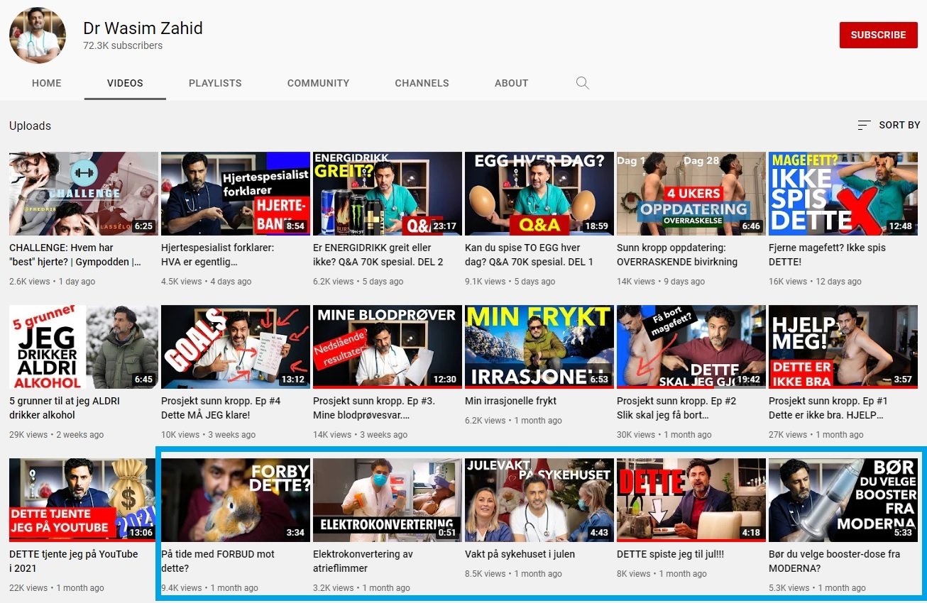 Legen Wasim Zahid har fått helt egenfokus på å gå ned i vekt. Ingen koronanyheter fra han lengre. Viktig nok, men veldig ensidig fokus fra video etter video. La det før egenfokuset hans i blå ramme: