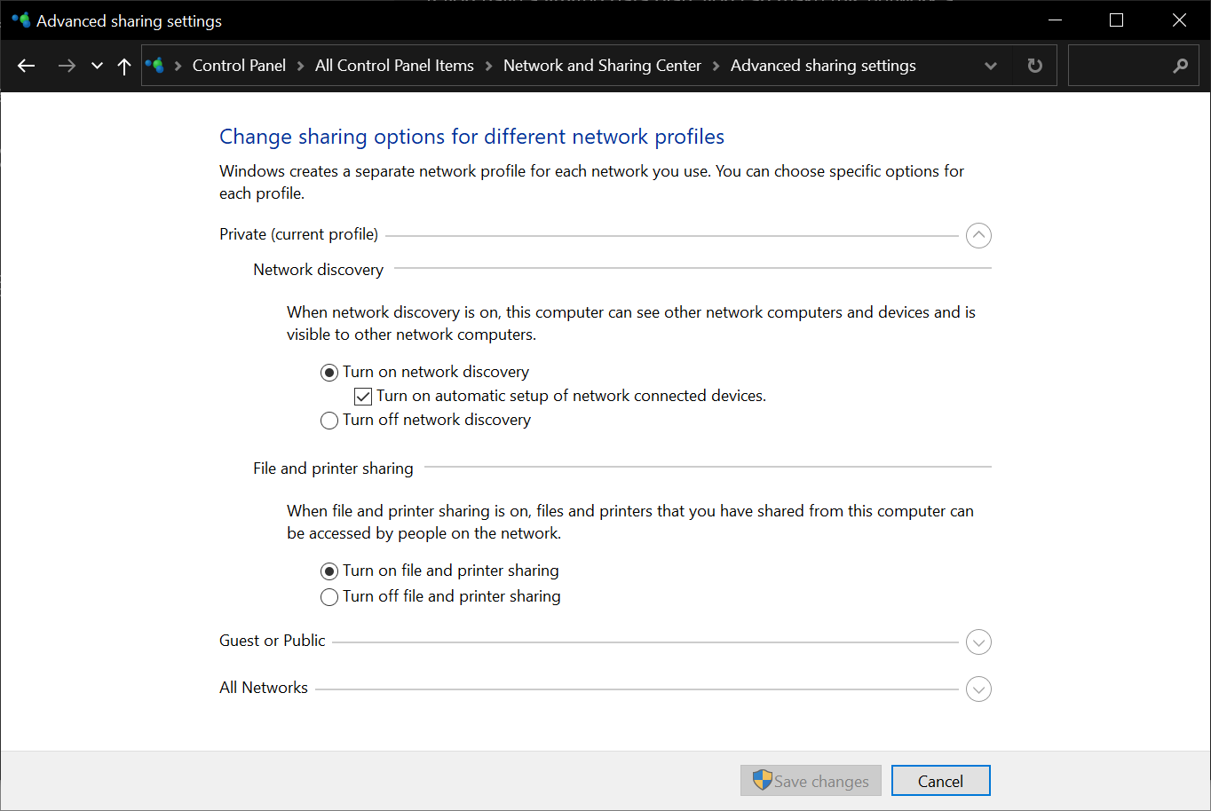 Dragonlove Skrevet 8. mai 2021 Forfatter Skrevet 8. mai 2021 NULL skrev (1 time siden): Du er på et nettverk som er satt opp som et "privat nettverk" og har ellers dette aktivert: Når du ellers NAS-en hvis du prøver med Win+R med '\\navn-satt-for-nas-en' eller '\\ip-for-nas-en'? Ja og ja, tidligere så fant jeg ikke andre pc'er inne i nettverket heller, det ordnet seg når jeg resatte nettverket og restartet pc på nytt.