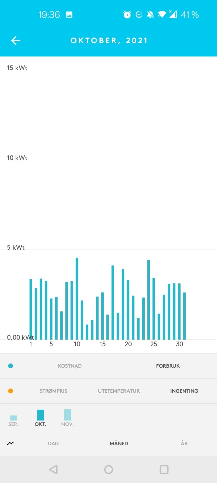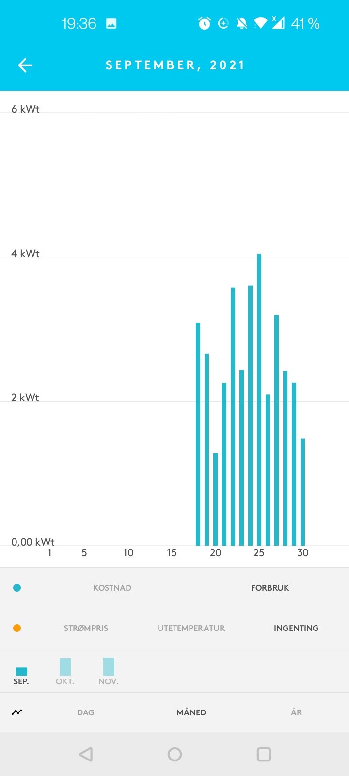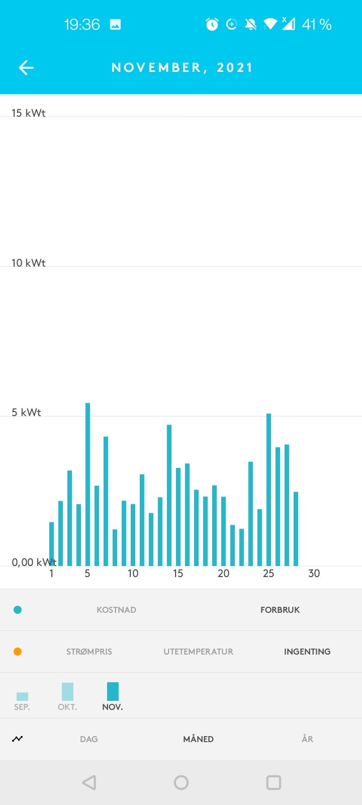 Gaea Skrevet 1. desember 2021 Skrevet 1. desember 2021 I november måned brukte jeg 79 kWh iflg Tibber.