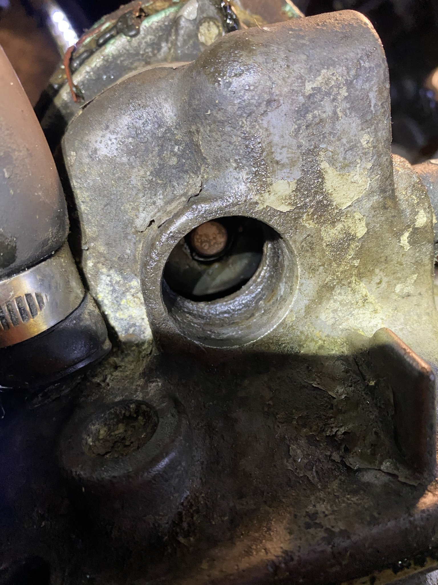 RaymondK Skrevet 24. november 2021 Skrevet 24. november 2021 Godset i termostathuset er litt opptæret, slik at selv med større enn original O-ring så ble det ikke tett der. Ser at Permatex og JB weld har laget et produkt som angivelig skal være custom made til mitt behov. Kan det være særlig forskjell på dette stoffet og "vanlig" paknings silikon? Er ikke det at jeg er for kjip til å spandere en 100lapp på noe jeg forhåpentligvis bare blir å bruke èn gang, er bare det at det er håpløst å få tak i her på berget Litt bilder av delene som skal holde tett. Passer liksom ikke hånd i hanske liksom... Når motoren skal ut og overhales blir jeg nok åp spakle i med Belzona eller annen epoxy, for så å bore ut nytt hull i termostathuset. Røret ned i termostathuset. har bygd opp kanten på nytt med epoxy etter dette bildet... Toppen av vannpumpa. Innsug Termostathuset, ikke 100% sirkulært lengre.