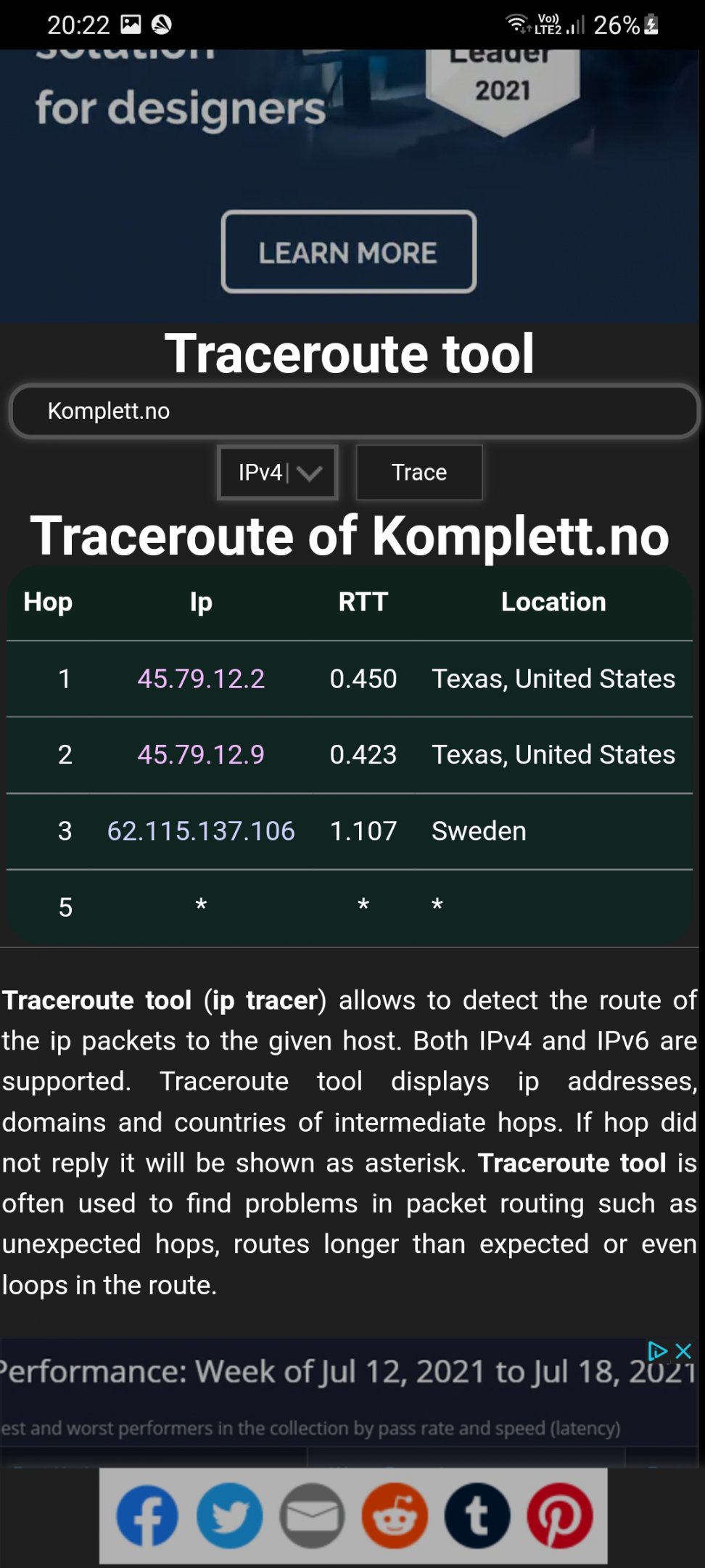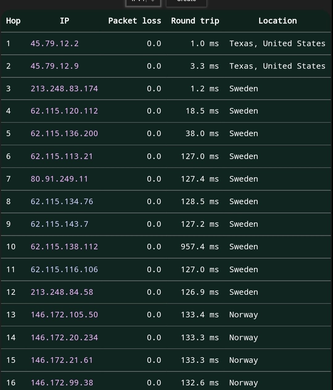 Eskaa Skrevet 31. desember 2021 Skrevet 31. desember 2021 Drev å kikka litt på router sikkerhet, dns ip og slikt. Så kom jeg over infobyip.com og kjørte noen traceroute og mtr rapport mot min eksterne ip. Og første stopp er alltid en ip i USA som. Tilhører linode.com. det er en cloud computing og linux server tjeneste. Så er det masse hopp i Sverige og en i Norge før stoppested. Hva er greia med det ? Prøvde kjøre samme uten WiFi og da var mer normalt kan du si.