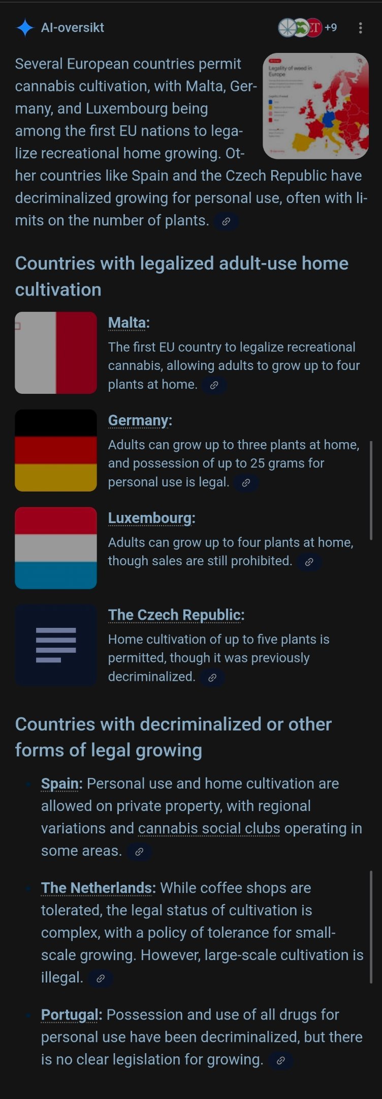 skaftetryne32 Skrevet 4 timer siden Forfatter Skrevet 4 timer siden Denne cannabisloven til Tyskland virker ikke helt gjennomtenkt, det er lov med 3 planter, men ikke mer enn 25 gram er lovlig i personlig eie, jeg vet en ting, en plante produserer stort sett langt mer enn 25 gram tørket vare etter innhøsting.
