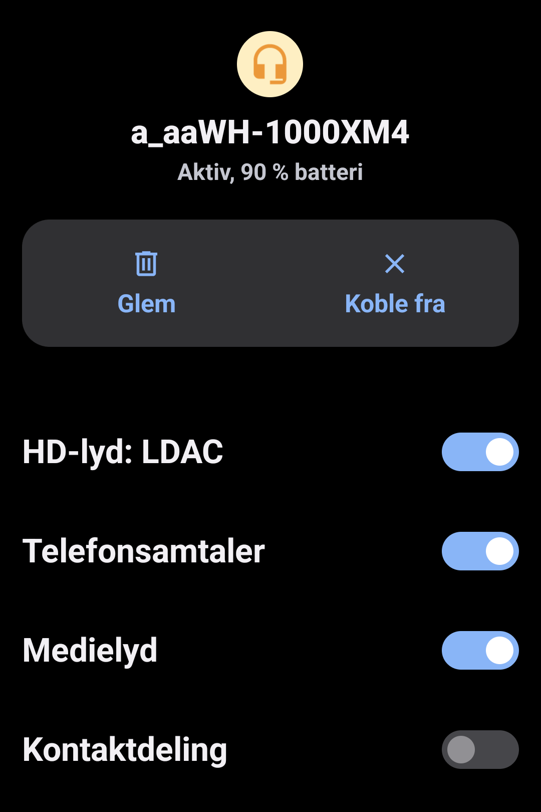 MadSilence Skrevet 5. desember 2022 Skrevet 5. desember 2022 18 minutes ago, a_aa said: @MadSilence: Ser at du ikke er alene med problemer med BT mot bilanlegg, jfr: https://zentalk.asus.com/en/discussion/63564/zenfone-9-bluetooth-connection-issues I hvert fall en av deltakerne der skriver at Android 13 (beta) løste det meste (stabil versjon ventet denne måned). Selv tar jeg ikke samtaler når jeg kjører bil, så jeg har ingen erfaring med handsfree med Zenfone 9, dessverre. Har du sjekket hvordan telefonen er koblet til bilen? Dersom du kobler til, og går til <Innstillinger> - <Tilkoblede enheter> og klikker på tannhjulet til høyre for navnet som representerer bilen, hva ser du da? Dersom jeg gjør det med et hodesett som både skal nyttes til telefonsamtaler og også motta musikk fra mobilen, ser det slik ut: Jeg vil tro at "Telefonsamtaler" må være påslått om det skal funke som handsfree i bil. Ja så det men jeg får ikke lov! Er det kanskje for nærme stable release?