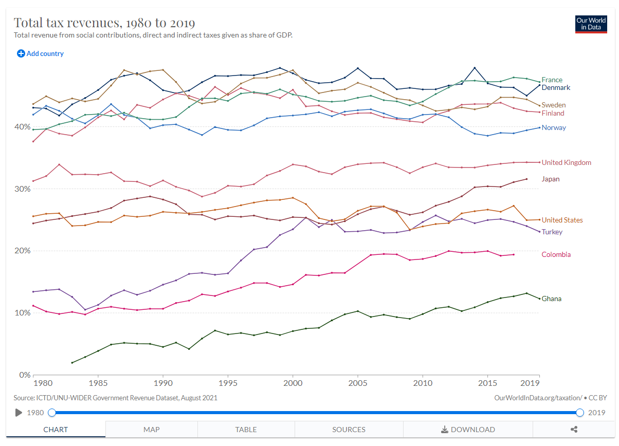 Dassen Skrevet 3. oktober 2022 Skrevet 3. oktober 2022 Nimrad skrev (2 minutter siden): Vi har ikke noe ekstremt høyt skattetrykk her til lands sammenlignet med andre sammenlignbare land. Men med skatter og samtlige avgifter skal det ikke så veldig mye til før man nærmer seg at halvparten går til staten. Bare for å underbygge det du sier: Source: ICTD/UNU-WIDER Government Revenue Dataset, August 2021 5 2