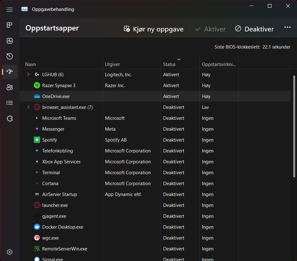 Gjest Slettet-aNZFa3 Skrevet 16. desember 2022 Skrevet 16. desember 2022 (endret) Spill jeg har hatt problemer med: Skyrim AE med noen mods Satisfactory (liten fabrikk, ingen mods) World of Warcraft: Dragonflight Har Windows 11 Home 22H2 (22621.963) Nettleser som ofte kjører i bakgrunn: Opera GX LVL4 (core: 93.0.4585.72) (Chromium-versjon: 107.0.5304.110) Har problemer med input lag på typ 0.5-1s med kun tastaturet. Startet etter installering av den nyeste Game Ready driveren fra nVidia. Har kjørt en DDU, og også reinstallert AMD chipset driveren for B450. Men har ikke hjulpet noe særlig. F.eks i WoW hvis jeg styrer karakteren ved å holde den høyre museknappen inne, så fungerer det helt fint. Og i f.eks Skyrim AE, hvis jeg bytter til en Xbox kontroller, så fungerer det helt fint. Merker det spesielt hvis enkelte kjerner/logiske prosessorer/tråder er makset, typ de 4 første av 16. Eller GPU er på 100%. Men det skjer også en del selv om ingen ting er "makset ut". Merker også litt hvis jeg har en stream e.l i bakgrunn på sekundær skjerm. Under spilling så ligger temperaturene mellom 60-70 på grafikkortet, og mellom 50-70 på prosessoren. Utfra det jeg har sett på grafene til MSI Afterburner i hvert fall. Fps er ellers ganske stabilt, utenom storbyer i WoW. Det er noen ting jeg mistenker: USB strømstyring/strømsparing Veit ikke helt hvordan jeg skal sjekke dette? Feil på den avtakbare USB kabelen Men da burde det ha vært problemer i flere spill? Ris/sjokoladeboller og is under taster? Har renset alt for å være sikker. Men selv uten tastehetter så er det fortsatt input lag. Feil med noe intern maskinvare Maskinvare: Hovedkort: ASRock B450M Steel Legend Prosessor: AMD Ryzen 7 3700X Grafikkort: ASUS TUF RTX 3070 Ti GAMING OC RAM: Patriot Viper RGB 16GB 3200Mhz (2 x 8GB, XMP 2.0) Hoved for spill: LaCie Portable SSD 1TB (tatt ut av skallet og puttet inn i en dock) - IcyBox IB-112StU3-B (Koplet til USB 3.0) Hoved for OS: Samsung SSD 950 PRO 512GB Fillagring & OneDrive: WDC WDS480G2G0B-00EPW0 (480GB M.2 SATA SSD) Generell lagring: WDC WD2003FZEX-00Z4SA0 (2TB SATA HDD) Tastatur: Logitech G PRO Tkl Mus: Razer Naga Pro Oppstartsprogrammer: Skyrim mods og instillinger: Spoiler WoW innstillinger: Spoiler Satisfactory instillinger: Spoiler Endret 16. desember 2022 av Slettet-aNZFa3