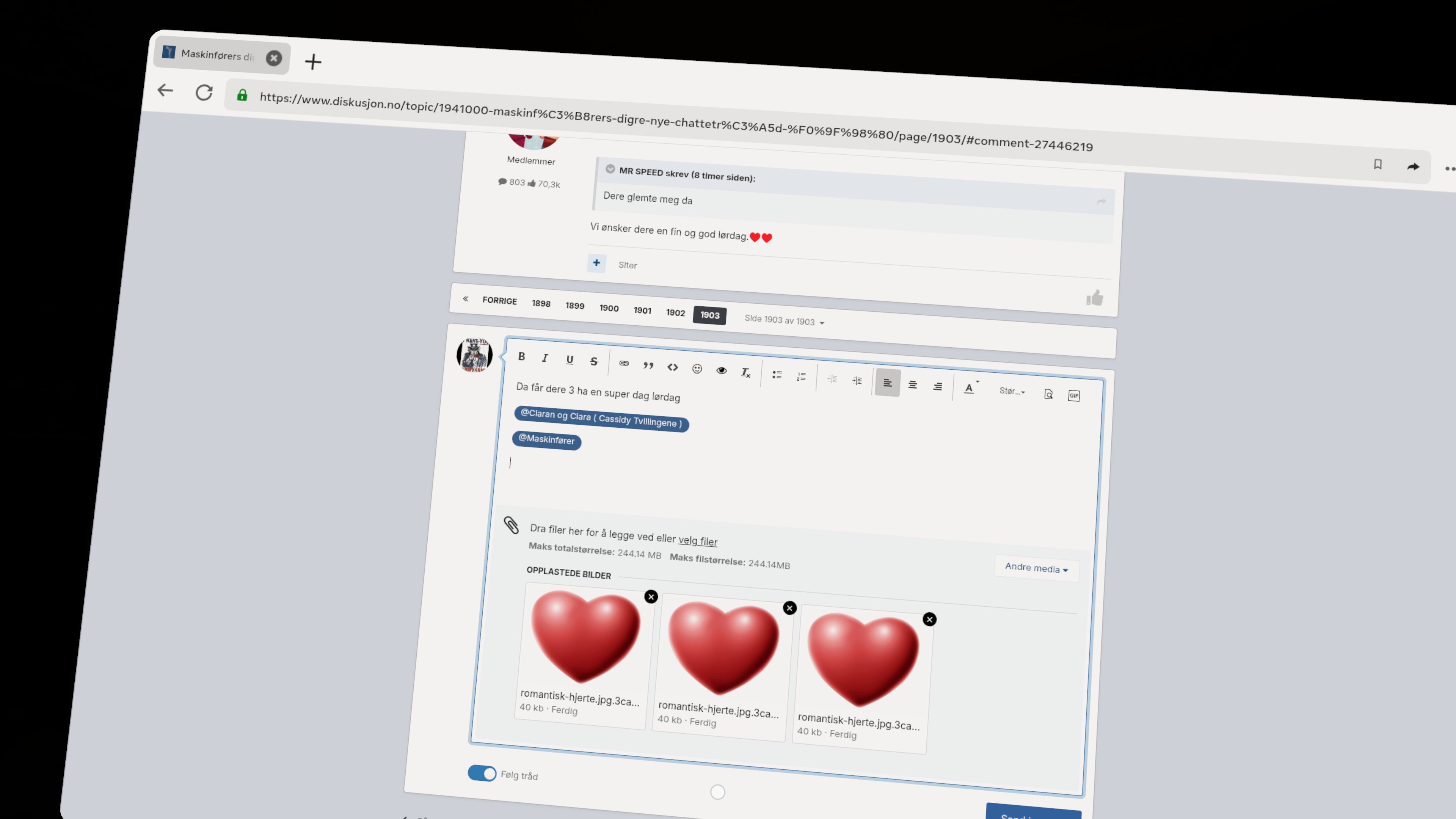 Ciaran og Ciara ( Cassidy Tvillingene ) Skrevet lørdag kl 11:47 Skrevet lørdag kl 11:47 Maskinfører skrev (13 timer siden): Bare koselig vi tenker på dere også ❤️❤️ MR SPEED skrev (3 timer siden): Dere glemte meg da Vi ønsker dere en fin og god lørdag.♥️♥️ 1