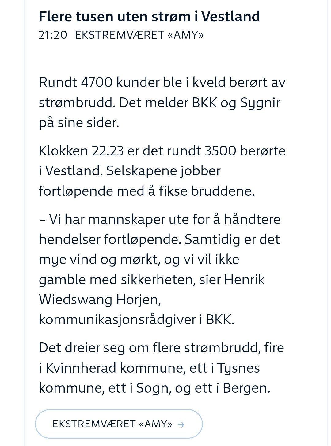 HF- Skrevet 41 minutter siden Forfatter Skrevet 41 minutter siden Sjørøver skrev (23 minutter siden): Hva er sammenhengen mellom vind og strømbrudd? Hva skjer? Du tuller no, ikkje sant?