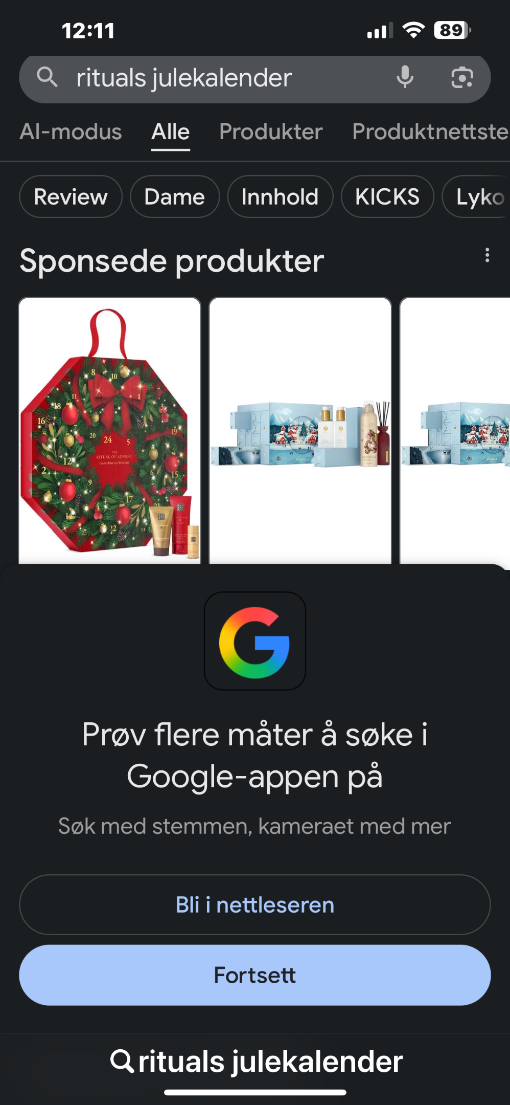 Sharpings Skrevet 3 timer siden Skrevet 3 timer siden (endret) Hver eneste dag hvis jeg søker på noe på telefonen min kommer det opp et vindu der nettleseren eller Google spør om jeg vil bruke Google appen istedet. Jeg vil ikke det. Hvordan kan jeg få slutt på det evinnelige maset om dette? Dette skjer både på iPhone og på Androidtelefonen min. Se bilde: Endret 3 timer siden av Sharpings