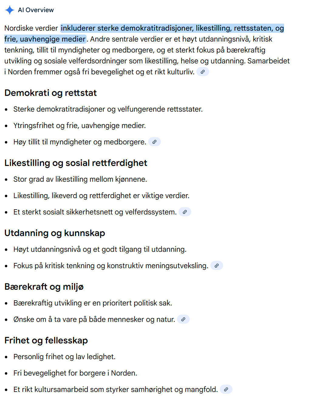 jjkoggan Skrevet 38 minutter siden Skrevet 38 minutter siden DukeNukem3d skrev (2 minutter siden): Nekter du for at vesten er best på disse verdiene som Leticia nevner? The Economist Democracy Index - Wikipedia Du kan jo se selv hvordan vesten gjør det (eller de som har valgt å dele våre verdier som Sør-Korea og Japan) kontra andre land eller andre religioner. Ser du ikke korrelasjonen jeg nevner? Det er dårlig vitenskap å sammenligne land pga så mange forskjellige variabler. Det er mye bedre å måle effekten på noe når du måler det i det samme samfunnet, ikke forskjellige land med forskjellige historier, politikk og økonomisk utfordringer. 2