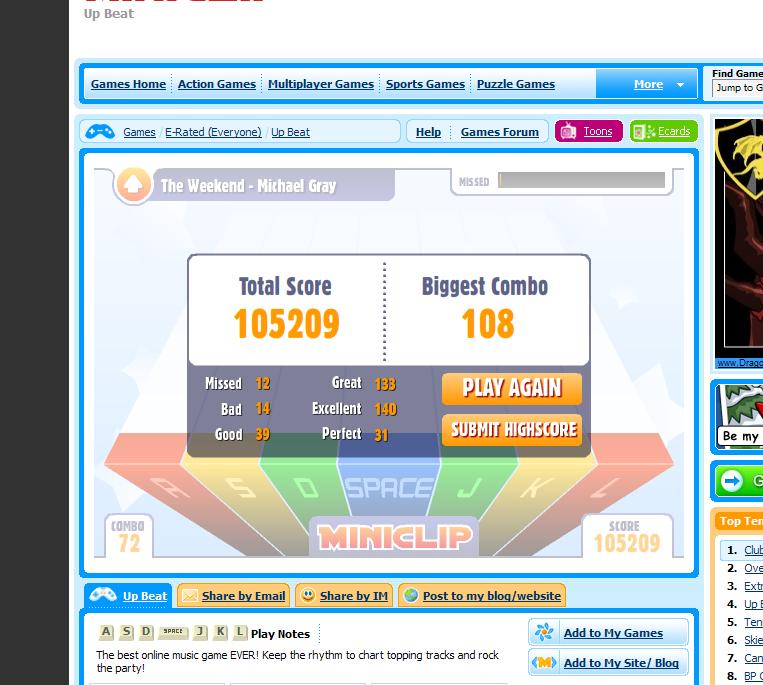 Thor. Skrevet 22. juni 2007 Skrevet 22. juni 2007 Nytt spill: Up Beat! Spillet minner om DDR eller stepmania. Trykk sammen med rytmen. Min beste så langt: