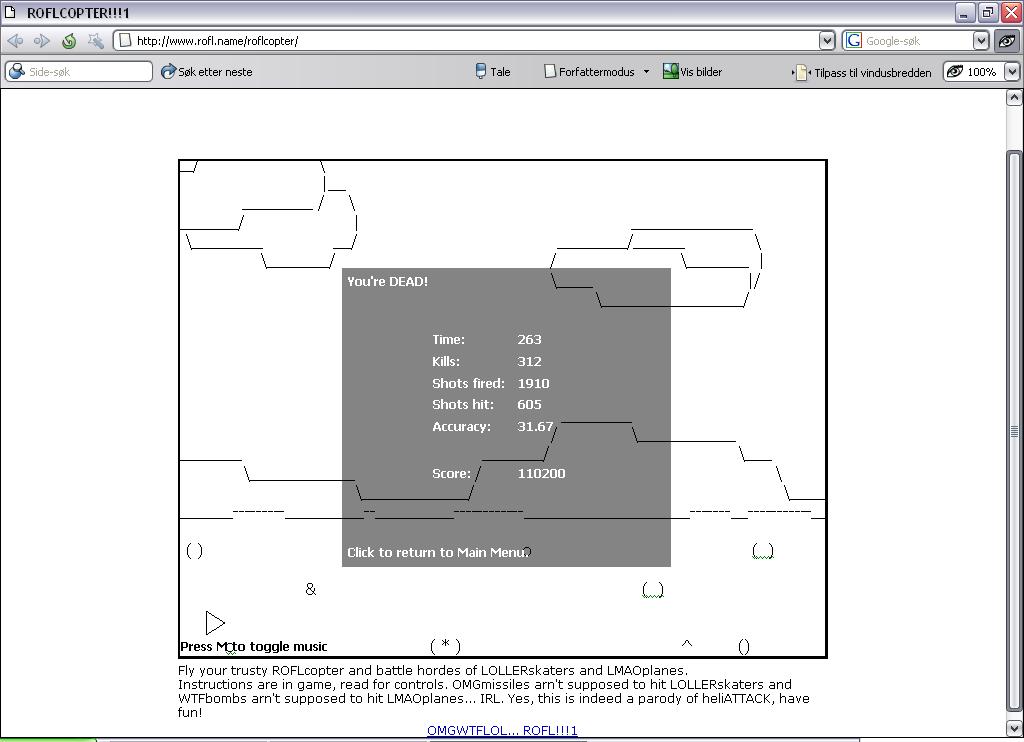 Sovietpig Skrevet 4. september 2005 Skrevet 4. september 2005 http://www.rofl.name/roflcopter/ klarte 42220