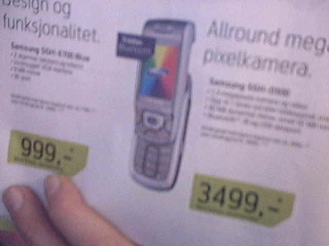 SuperEmil Skrevet 8. desember 2004 Skrevet 8. desember 2004 Så denne annonsen i et reklame-blad fra telehuset: Samsung SGH-D500: Allround megapixelkamera! legger ved et bilde(sorry hvis det er litt kornete, hadde ikke god tid) Det står ikke noe om at de ikke har den på lager! Betyr dette at den finnes på telehuset? Eller er det ønsketenking? Det er jo litt rart å sende ut et reklame for en telefon de ikke har inne