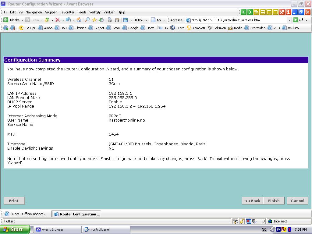 WackoJacko Skrevet 15. desember 2004 Skrevet 15. desember 2004 Hei, jeg har nettopp mottat min nye 3COM OfficeConnect Wireless 11g Cable/DSL router. Jeg har stresset en stund med få den til å virke men får d ikke til! Når jeg kun bruker modemet jeg mottok fra telenor fungerer alt helt fint, men når jeg kobler den trådløse routeren inn i systemet greier jeg ikke å koble opp. Det kommer et vindu hvor d står "conneting through WAN-miniport (PPPOE)". Hva skal jeg gjøre?