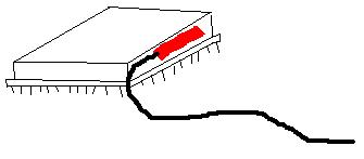 Ja men proben er for stor til å settes på siden av prosessoren, trodde ikke det var så farlig om jeg satte den på prosessoren, fordi den er jo så enormt tyn å pluss at det er kjølerpasta over alt..............