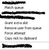 Zeph Skrevet 18. desember 2004 Skrevet 18. desember 2004 (endret) Grant extra slot - Tipper det er slik at om du har 3 upload slots og alle er opptatt kan du gi ein slot berre til den brukaren. Remove user from queue - Du fjerner denne brukaren frå nedlastingskøen til fila Copy nick to clipboard - Kopiere nicket til personen til utklippstavle rota vekk den andre Endret 18. desember 2004 av zeph