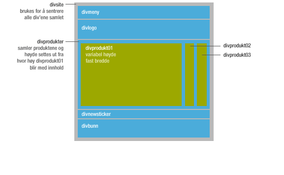 sjursen Skrevet 29. desember 2004 Skrevet 29. desember 2004 Noen som har peil på hvordan kode med DIV og CSS for en slik layout skal se ut? Jeg har prøvd alt mulig, men får ikke de tre midterste DIV'ene til å ekspandere i høyden + de under til å plassere seg rett under de ekspanderende DIV'ene. Hadde vært helt utmerket om noen hadde peil, så jeg kan unngå å bruke tabeller.