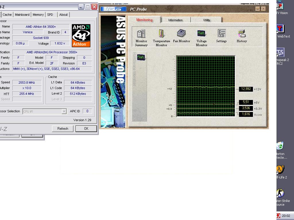 AmdTommy Skrevet 6. desember 2005 Skrevet 6. desember 2005 (endret) hva skjer med dataen min? spiller css i 1 minutt åsså får jeg varning av asus probe om for høy volt på 5 + eller no.. åsså ser jeg på core volt å den er høyere enn jeg har satt den i bios.. står på 1.485 i bios å se hva cpu z å asus probe viser! jeg har litt overklokka maskin men den har alrdi vært sånn før.. har bios 1011.. takker for svar BTW: er det noe farlig? EDIT: bilde ffs.. Endret 6. desember 2005 av AmdTommy