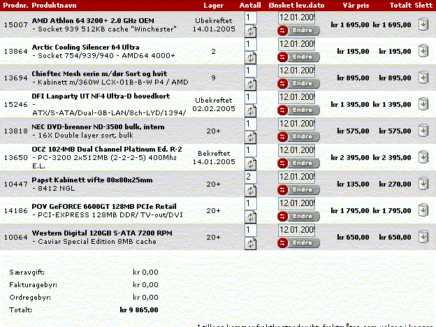 Stian216 Skrevet 12. januar 2005 Skrevet 12. januar 2005 (endret) jeg vet ikke hva du har fra før. CPU AMD Athlon 64 3200+ 2.0 GHz Hovedkort MSI K8N NEO2 Plat.-54 nforce3 250 Ultra Minne Corsair ValueS 1024MB DDR-DIMM PC3200 Skjermkort POV GeFORCE 6800 GT 256MB AGP Harddisk Western Digital 200GB IDE ATA/100 Lydkort Creative SB Audigy 2 ZS m/ 2 spill Strømforsyning Thermaltake Silent strømforsyning 480W Totalt: kr 10 619,00 EDIT: ble litt mer en 10 000, men det er til å leve med Endret 12. januar 2005 av Fenriz