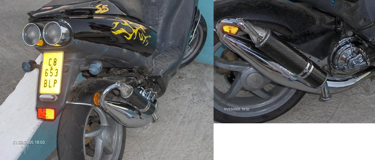 Erik_s Skrevet 22. januar 2005 Skrevet 22. januar 2005 (endret) det er en Aprilia rs racing 65. og den går i 120km/t original med ny potte.. Den blodtrimma Aerox'en går mellom 130-140km/t. Nå er den på verksted. Men jeg fikk tatt et bilde av potta og selve Aprilia'en. den er deilig. Endret 23. januar 2005 av Erik_s
