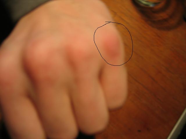 DarkStarr Skrevet 27. januar 2005 Skrevet 27. januar 2005 (endret) det var faktisk Rykende_Kaffe og en annen som jagde meg så jeg vrikka beinet når jeg løp under den basketball kurven og jeg lurer på om jeg har "ødelagt" knoka på lille fingeren min. bare jeg såvidt slår noe helt løst blir den blå og vond...har vært sånn siden jeg slo høl i veggen hjemme en gang for ca. 6 måneder siden... dårlig bilde men men... Endret 27. januar 2005 av DarkStarr