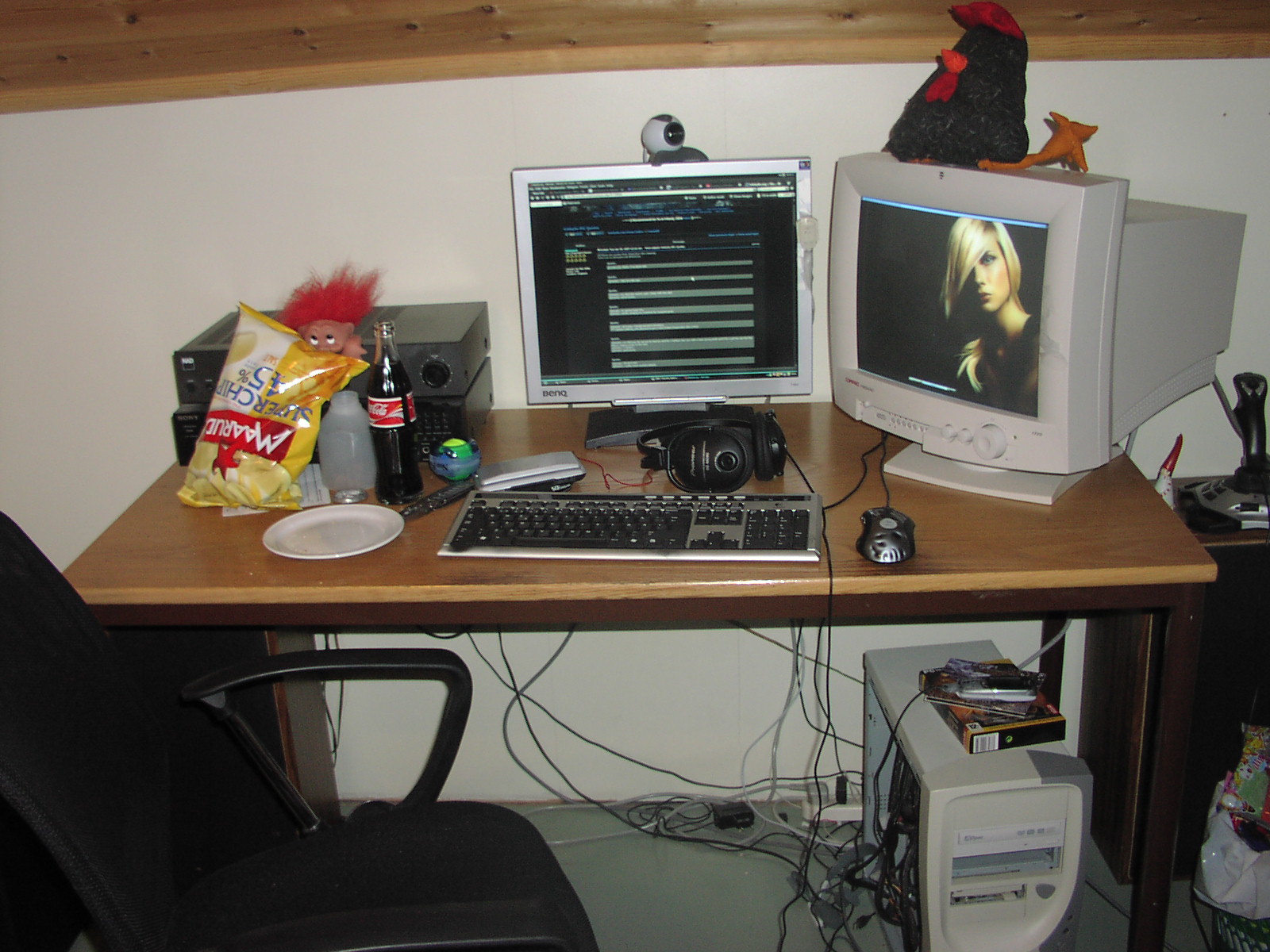 SemikolonP Skrevet 1. februar 2007 Skrevet 1. februar 2007 Her er skrivebordet mitt, litt rotete: 7837650[/snapback] Du har samme laptop som jeg har. Men kan jeg se om du har noen teipbiter på venstre side av den? Har masse på min. Bilder av min bule kommer en dag...