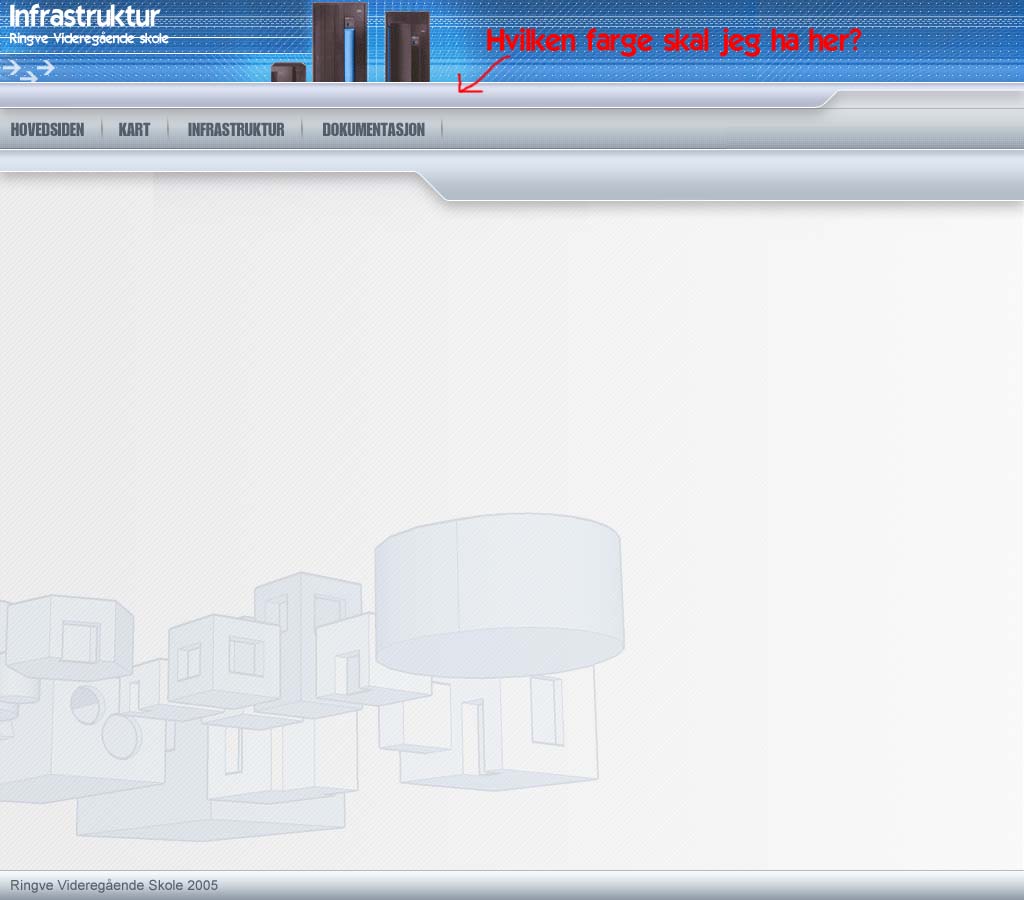 Kenny Bones Skrevet 16. februar 2005 Skrevet 16. februar 2005 Hei! Jeg holder på å lager et oppsett med infrastrukturen på skolen og tenkte jeg skulle lage en webløsning for det. Nå har jeg et lite problem. Hvilke farger skal jeg bruke? Selve designet har en litt blålig farge, men er ikke sikker på om det funker helt.. Legger ved et bilde som kanskje forklarer mer. På forhånd takk!!