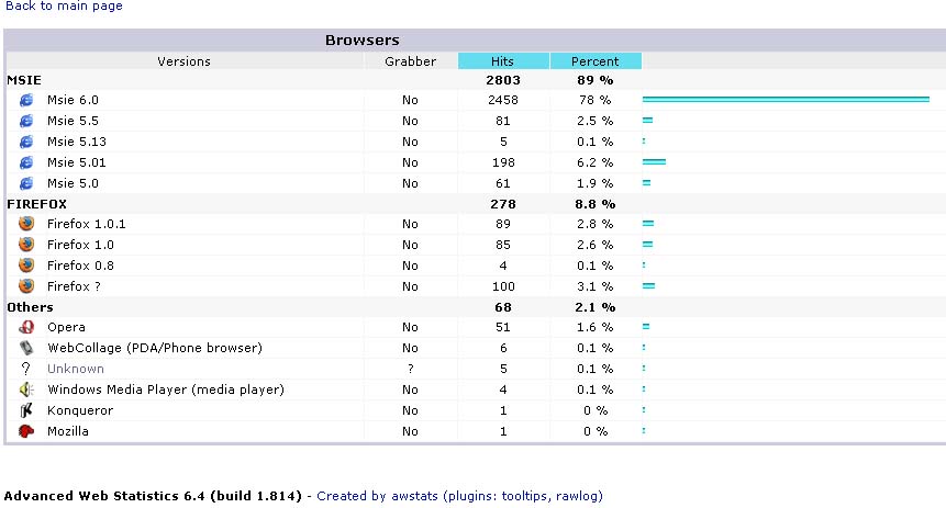 Gronz Skrevet 3. mars 2005 Skrevet 3. mars 2005 (endret) Top 15 of 1057 Total User Agents Endret 3. mars 2005 av Gimper