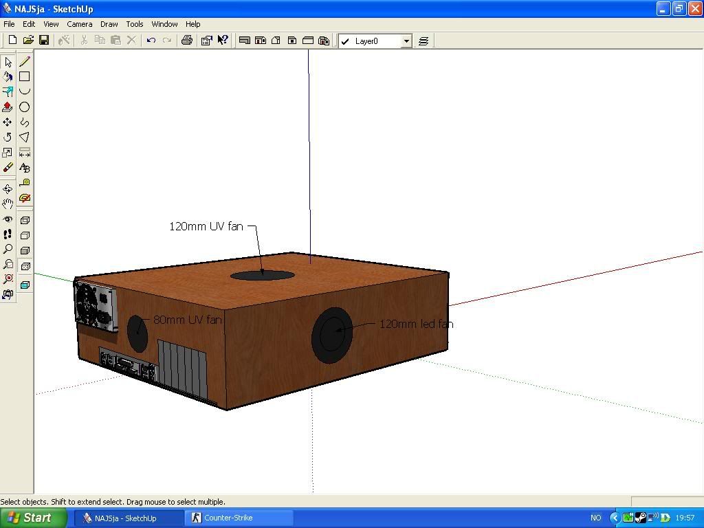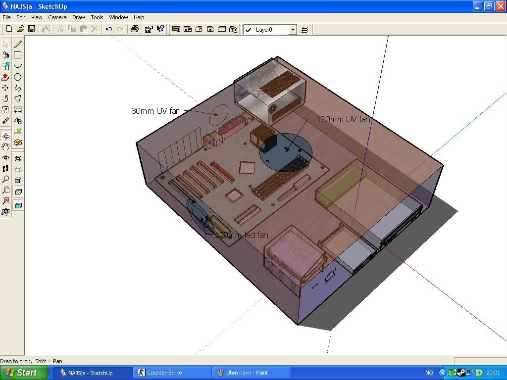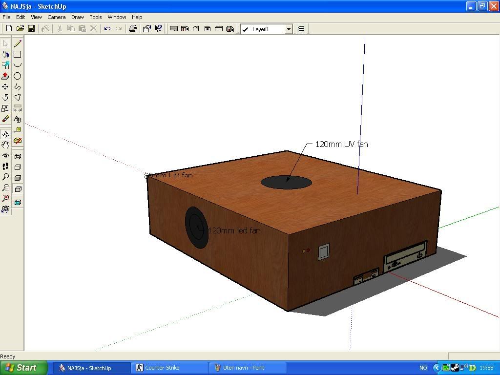 sigz Skrevet 23. mars 2005 Forfatter Skrevet 23. mars 2005 Nå har jeg endelig lært eg SketchUp! Har laget en tegning av kabinettet..slik det forhåpentligvis blir:: Bak og ene siden:: Foran:: Inni:: Trolig HDD holder:: Det var de. Som dere sikkert ser er ikke alt i riktig forhold, men det er ihvertfall bedre enn før. Den må kanskje være litt høyere å, men det finner jeg ut når vi får HK brettet. Er det noe dere lurer på er det bare å spørre!